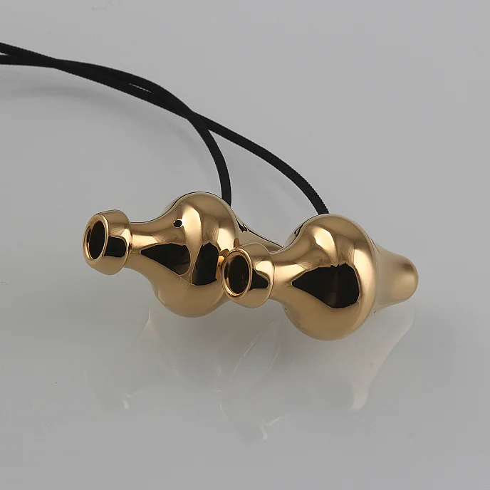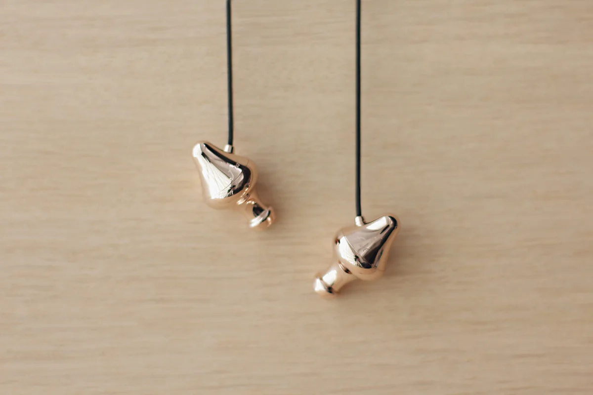 Наушники изготовлены в корпусах из меди с хромированием и по форме напоминают античные амфоры.