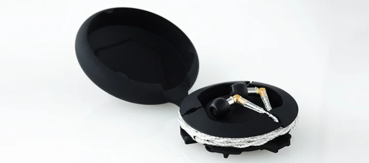 Мы также специально разработали новый футляр. Наушники аккуратно фиксируются между куполообразными силиконовыми креплениями и крышкой. Кабель надежно располагается по периметру футляра, а штекер хранится в отсеке, отдельном от наушников. Всем известно, что в футлярах, в которых наушники хранятся неподвижно, очень часто повреждается кабель. Мы учли этот факт и разработали футляр, исключающий риск повреждения наушников и кабеля, благодаря тому, что кабель может быть смотан по периметру футляра разными способами и в разных направлениях. В собранном виде футляр с легкостью помещается в ладони.