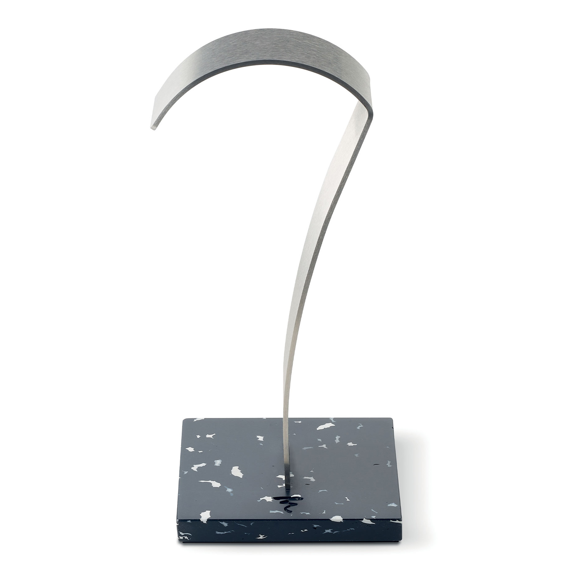 Эта элегантная и прочная арка изготовлена из матовой нержавеющей стали, что придает ей элегантный внешний вид. Основание подставки изготовлено из 100% переработанного полимера, форма которого не содержит каких-либо смол. Этот выбор отражает ответственный и экологичный подход, без ущерба для дизайна или удобства использования.