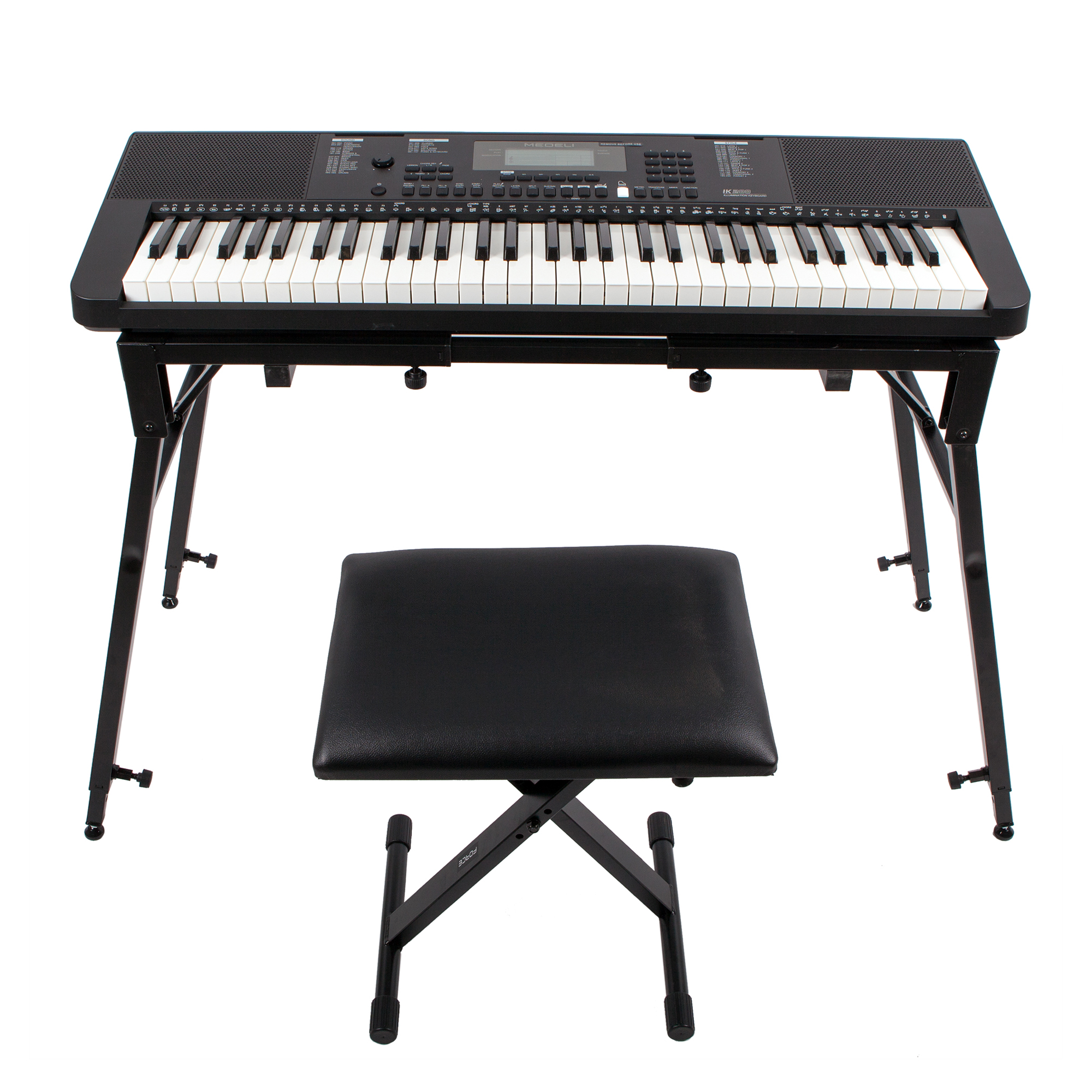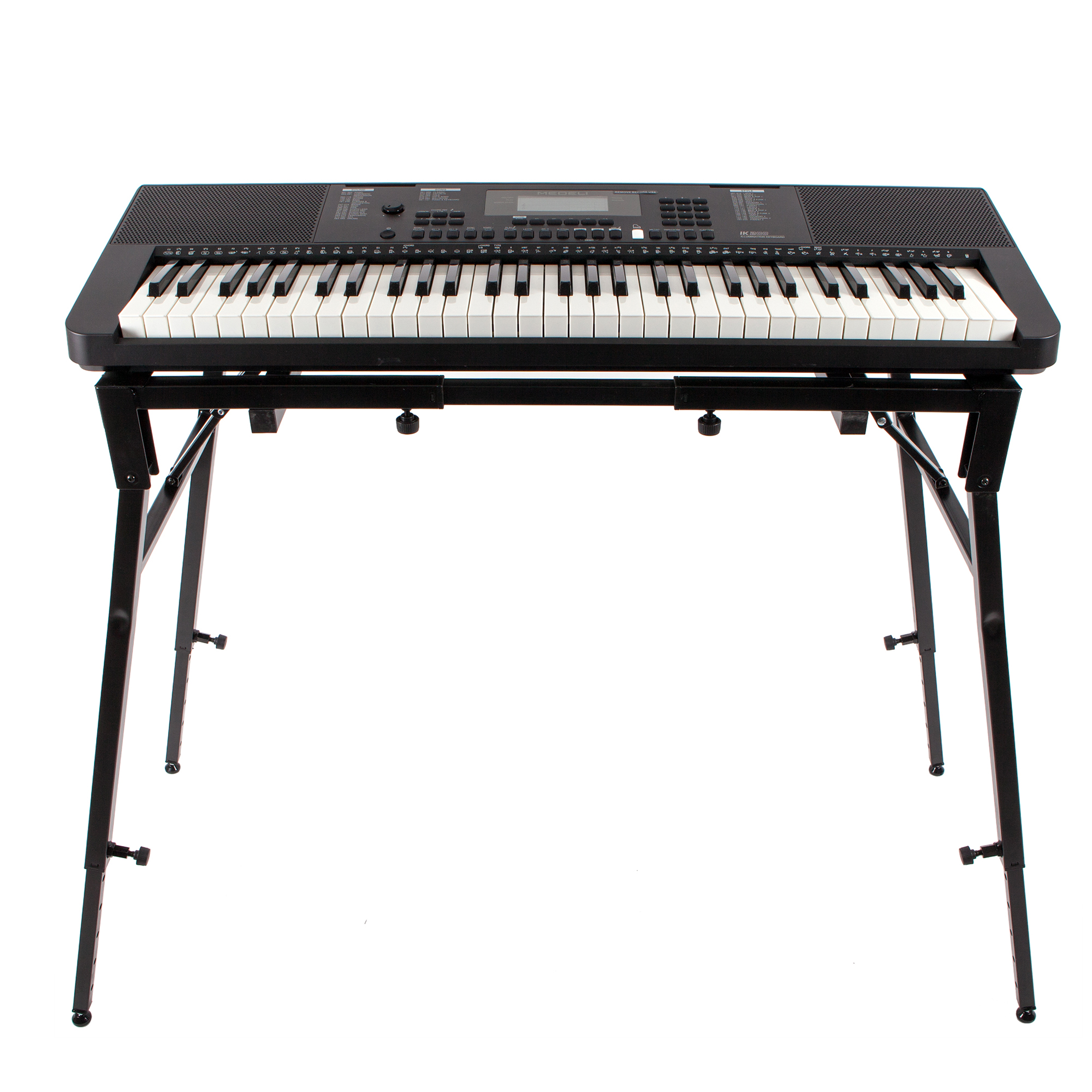 Стойка выполнена из прочной стали с черным порошковым покрытием. Благодаря своей форме, она равномерно распределяет вес инструмента, что исключает раскачивание во время экспрессивной игры. Такая конфигурация особенно рекомендуется для больших и тяжелых моделей клавишных.