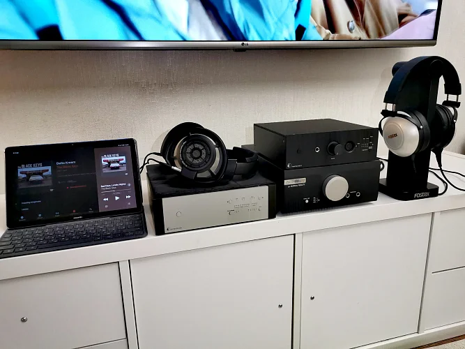 В комплектацию входит подставка для вывешивания наушников и чехол для их переноски. Флагман Fostex TH900mk2 отличается достаточно высокой чувствительностью, широким частотным диапазоном и низким импедансом в 25 Ом. Поэтому его можно подключать даже к портативным источникам сигнала. Весит такая модель 390 грамм без учета кабеля. Наушники обеспечивают открытое, энергичное и реалистичное звучание, которое отличается чистотой, теплым тональным балансом, ровной серединой и в меру глубоким насыщенным басом.