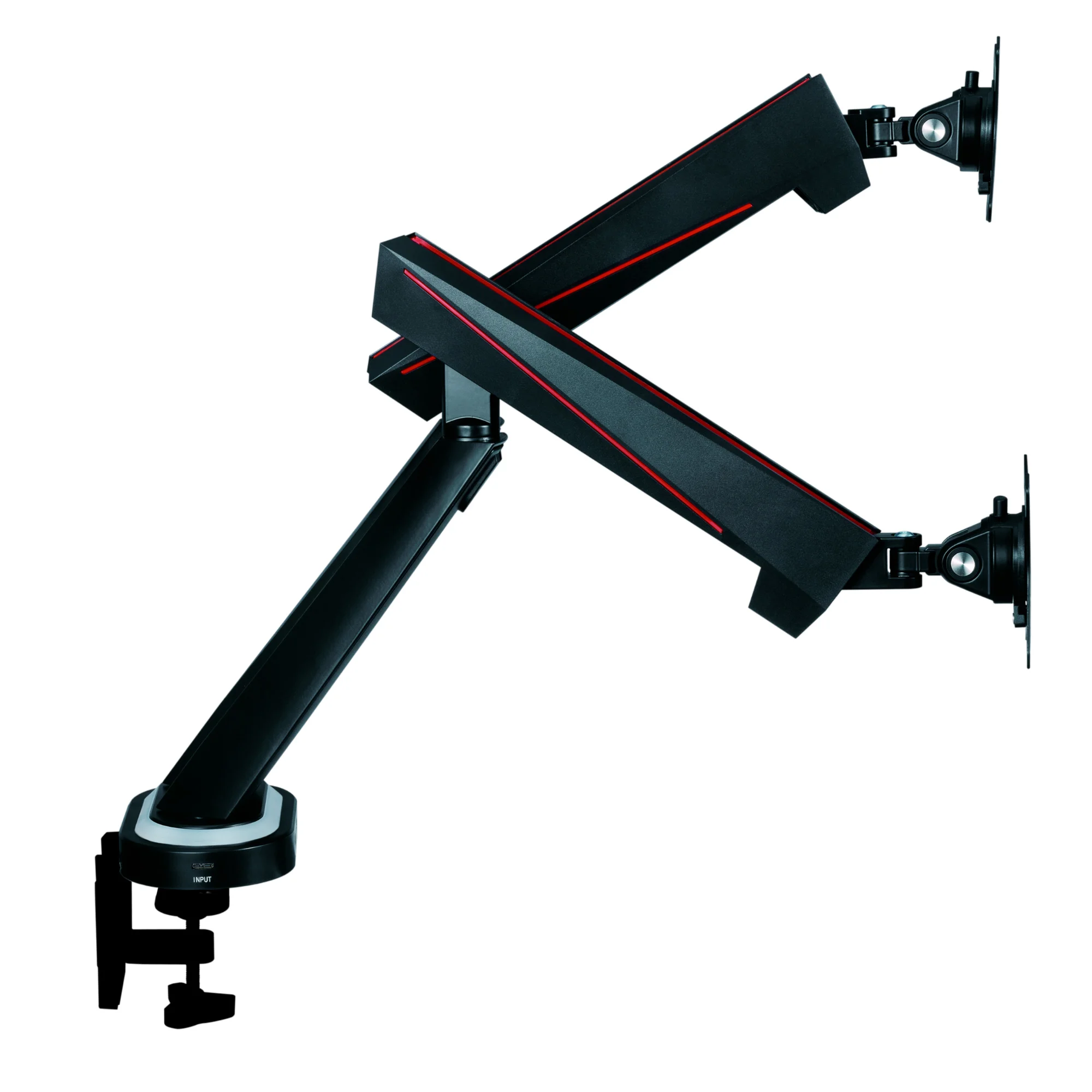 Кронштейн для игрового монитора FoxGear изготовлен из высококачественного алюминия. Данный кронштейн подходит для мониторов с диагональю от 17 до 32 дюймов и весом до 8 кг (для одного монитора). Созданный в геймерском стиле кронштейн для мониторов поможет вам разместить мониторы на максимально удобной высоте. Перемещение монитора вверх, вниз, вперед и назад осуществляется легким движением без усилий. Встроенная система управления кабелями обеспечивает чистоту и порядок ваших сетевых и AV-кабелей.