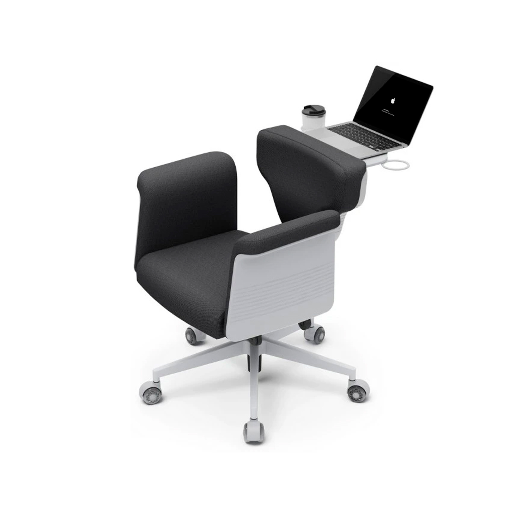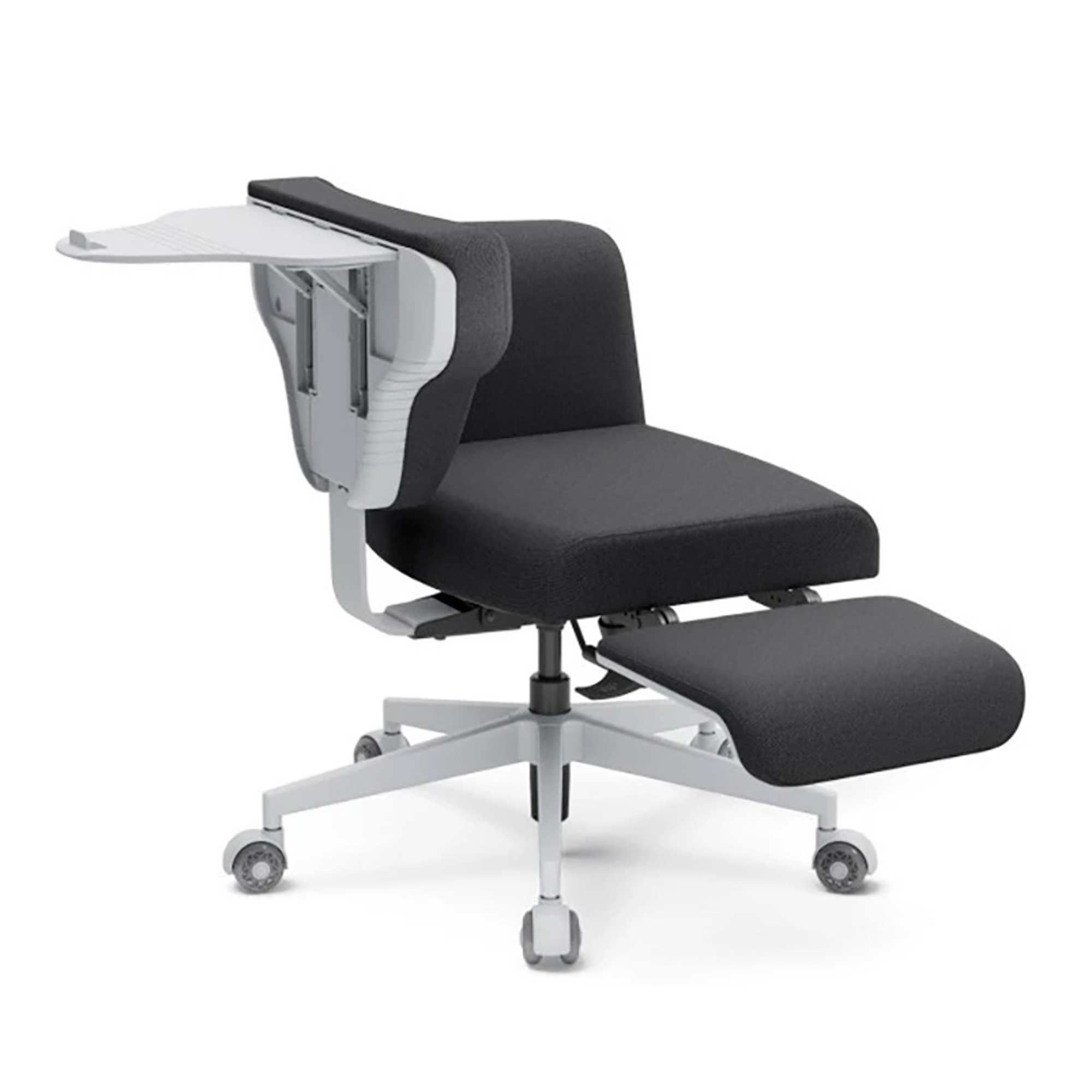 Также в этой модели есть складной столик, который встроен в спинку. Он легко раскладывается, имеет несколько вариантов наклона и как раз подойдет для небольшого ноутбука. Благодаря такому решению можно работать и без отдельного стола — просто устраивайтесь поудобнее в своем кресле и приступайте!