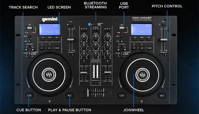 Благодаря центральной микшерной секции, плеер CDM-4000BT предлагает все необходимое для работы диджея: двухполосный эквалайзер, регулировка усиления, множество входов и выходов для подключения внешних инструментов: таких как мониторы, микрофоны, усилители, наушники и записывающие устройства. Кроме того, управление высотой тона и секция лупера позволяют творчески микшировать.