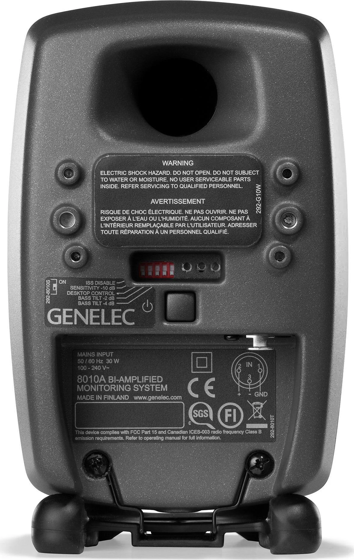 Genelec 8010AP имеет встроенную схему Intelligent Signal Sensing ISS, которая позволяет экономить энергию. Она автоматически переводит монитор со спящий режим, если на протяжении определенного периода времени звуковой сигнал будет отсутствовать. Как только он появится, полноценная работа монитора восстановится. Кроме того, если подобная функция Вам не требуется, схему можно отключить.