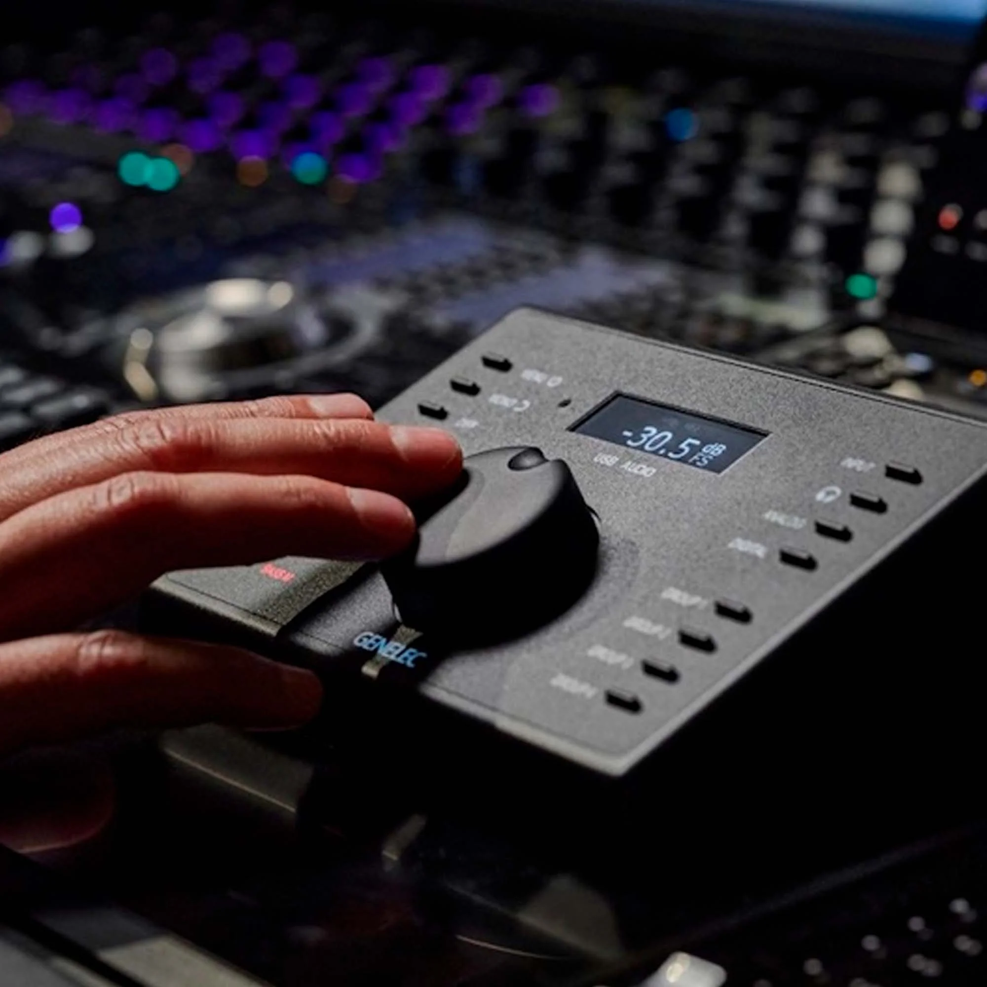Genelec 9320A Reference Controller — контроллер для систем мониторинга в стерео и immersive конфигурациях. Контроллер обеспечивает переключение между наушниками и акустическими системами без изменения уровня звука, а также поддерживает работу с программным обеспечением Genelec Loudspeaker Manager (GLM) и Aural ID для калибровки систем.