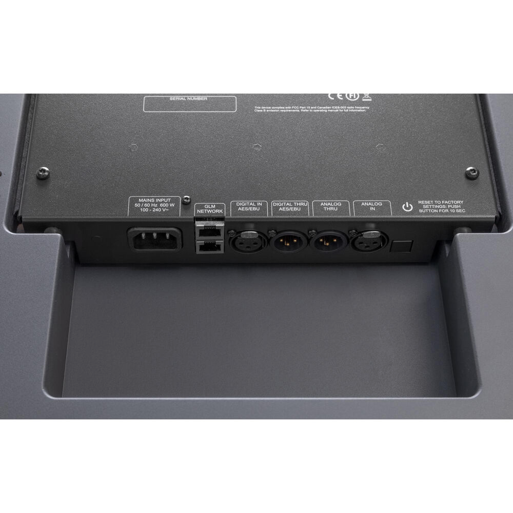 Сабвуфер имеет три режима работы, один из которых (Complementary) дает плоский нейтральный НЧ отклик, другой (Continued Directivity) использует одновременно оба вуфера для создания постоянной направленности, совпадающей с направленностью монитора, а третий (Anti-reflection) уменьшает негативное воздействие отражений звука от стен, пола и потолка. После выбора места установки сабвуфера для оптимизации сигнала используется функция автокалибровки ПО GLM. Сабвуфер снабжен аналоговым входом и выходом с разъемами XLR, входом и выходом AES/EBU с разъемами XLR и двумя разъемами RJ45 для управления.