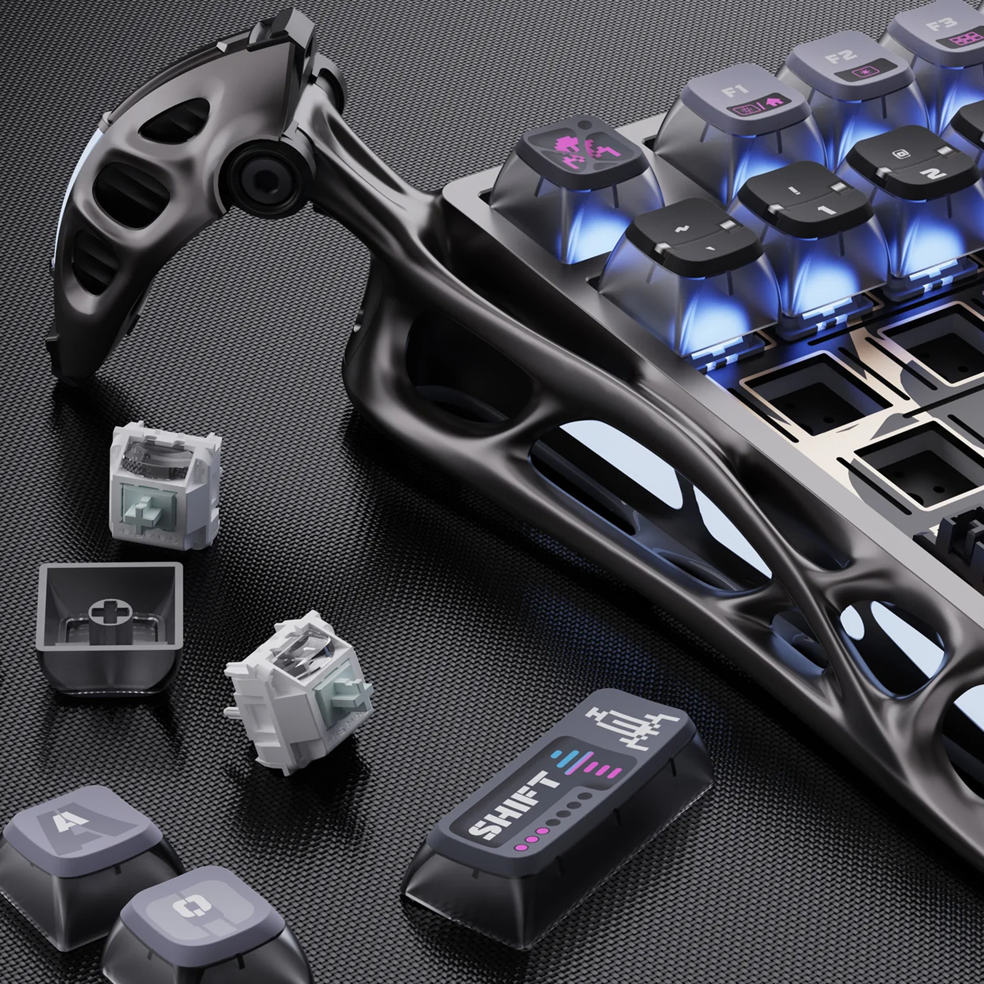 Игровая клавиатура GravaStar Mercury K1 Pro — это флагманская механическая модель, которая продолжает фирменную концепцию бренда «Sci-Fi арт-объект». Она разработана для геймеров и энтузиастов, которые ценят не только техническое совершенство, но и уникальную эстетику в стиле футуристичного индустриального дизайна.
