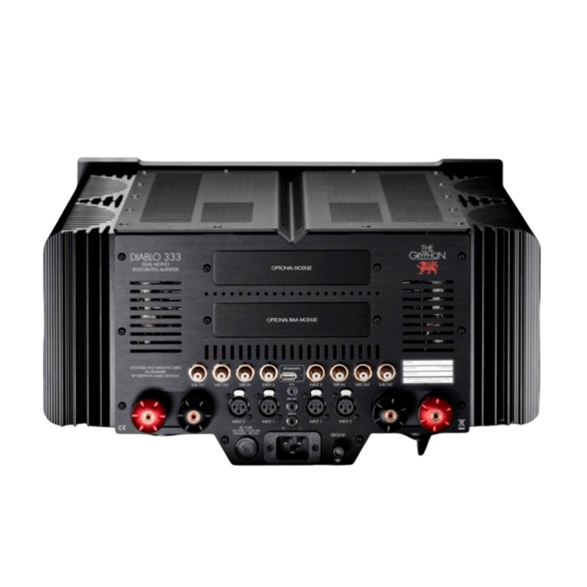 Как и в случае с Diablo 300, функционал усилителя Gryphon Diablo 333 может быть расширен опциональными модулями фонокорректора и ЦАП, для подключения которых на задней панели устройства есть два слота расширения. Модули были полностью переработаны для новой модели. Фонокорректор Gryphon PS-3 использует топологию True Dual Mono класса A от входа до выхода, без глобальной отрицательной обратной связи. Его схема выполнена на дискретных элементах. Позолоченные балансные входные разъемы Neutrik XLR заменяют разъемы RCA, использовавшиеся в модуле фонокорректора для усилителя предыдущего поколения PS-2S. Сопротивление нагрузки для головки МС можно установить снаружи с помощью переключателей, в отличие от внутренних перемычек на модуле PS-2S. Тип головки звукоснимателя MM/MC выбирается через системное меню Diablo 333.