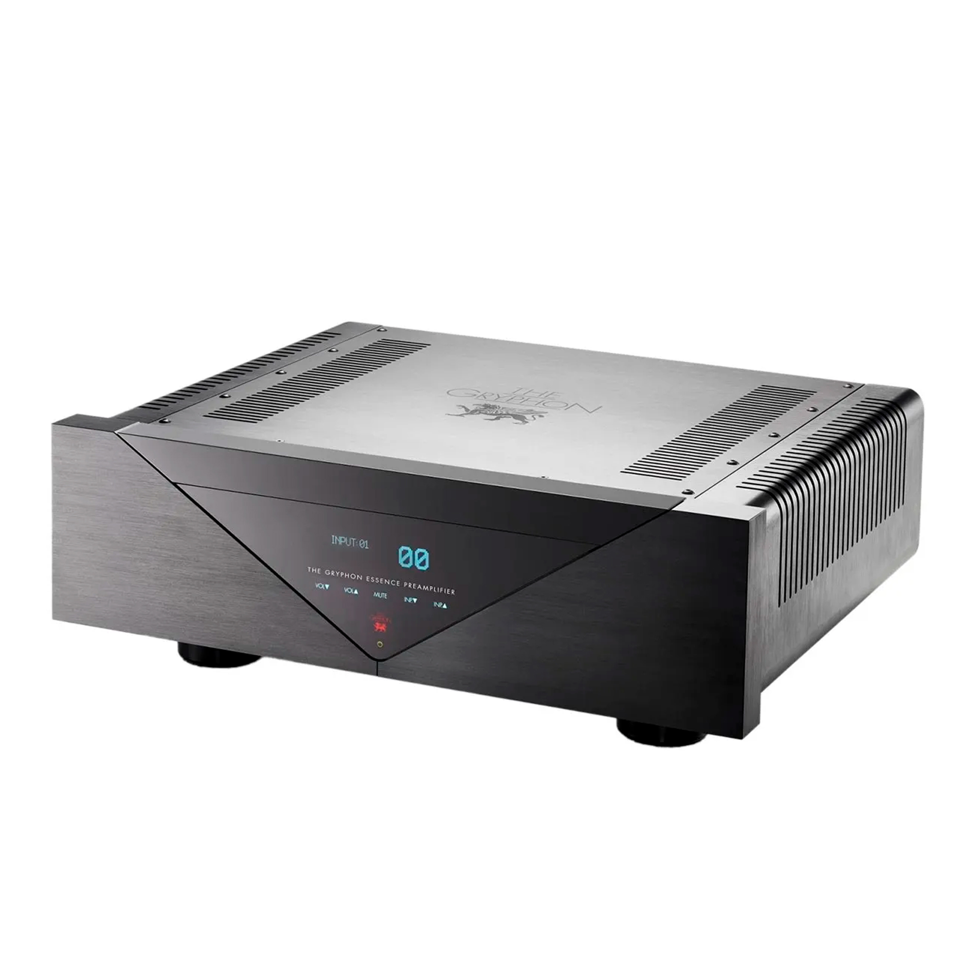Вакуумный флуоресцентный дисплей новинки получил регулируемую подсветку (пять уровней), символы сенсорной панели управления также подсвечены. Управление Gryphon Audio Essence предусмотрено и с инфракрасного пульта дистанционного управления. Обновление встроенного ПО — с помощью ПК или с флеш-памяти.