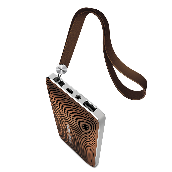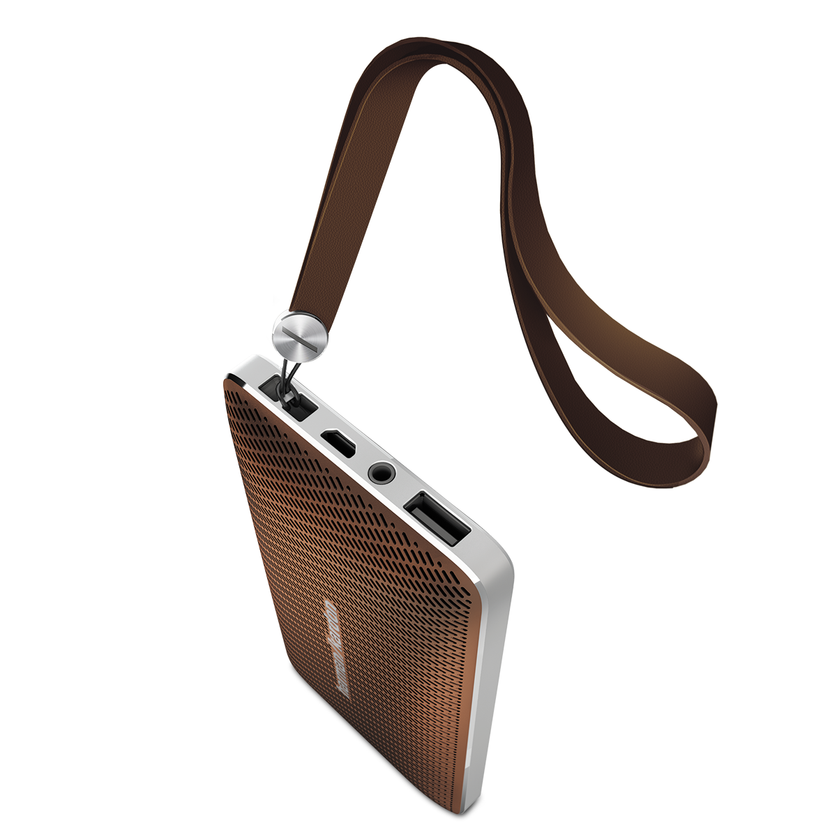Динамик выполнен в алюминиевом корпусе с отделкой из натуральной кожи. Он работает в режиме проигрывания музыки или телефонной связи в течение 8-ми часов! Кроме того, если ваш смартфон находится на последнем издыхании, вы можете просто зарядить его от Esquire Mini через порт USB или mini USB.