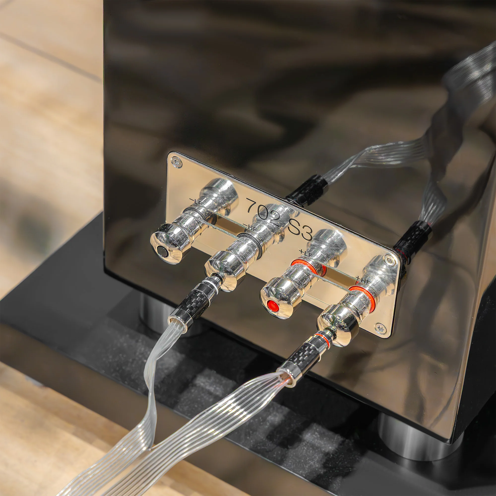 Вместе с посеребренными коннекторами это позволяет достичь отличной разрешающей способности и полной передачи всего спектра звуковых частот.