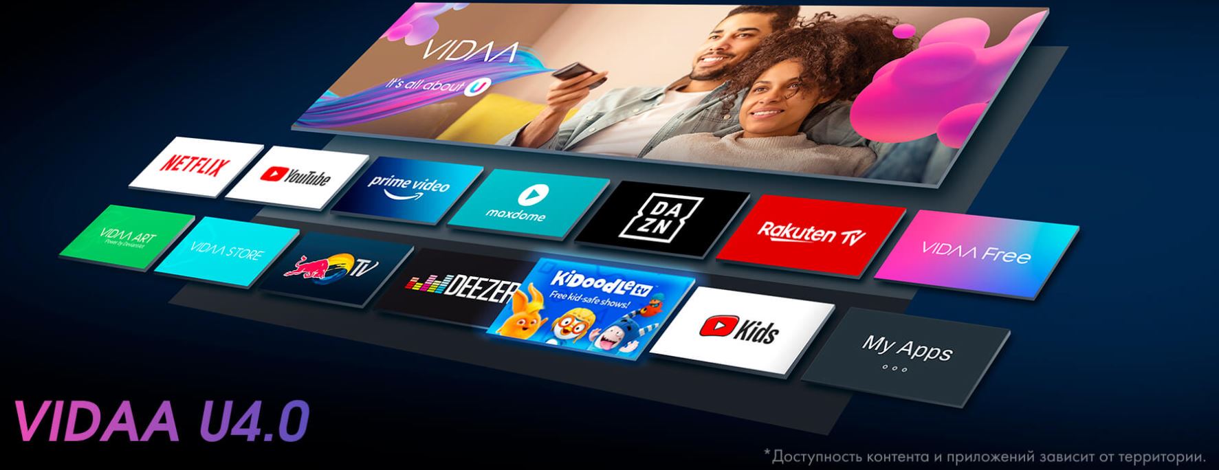 Благодаря упрощенному интерфейсу, который позволяет легко переключаться между вашими любимыми сервисами потокового воспроизведения видео и устройствами, платформа VIDAA U предлагает пользователям самый лучший глобальный и локальный контент.