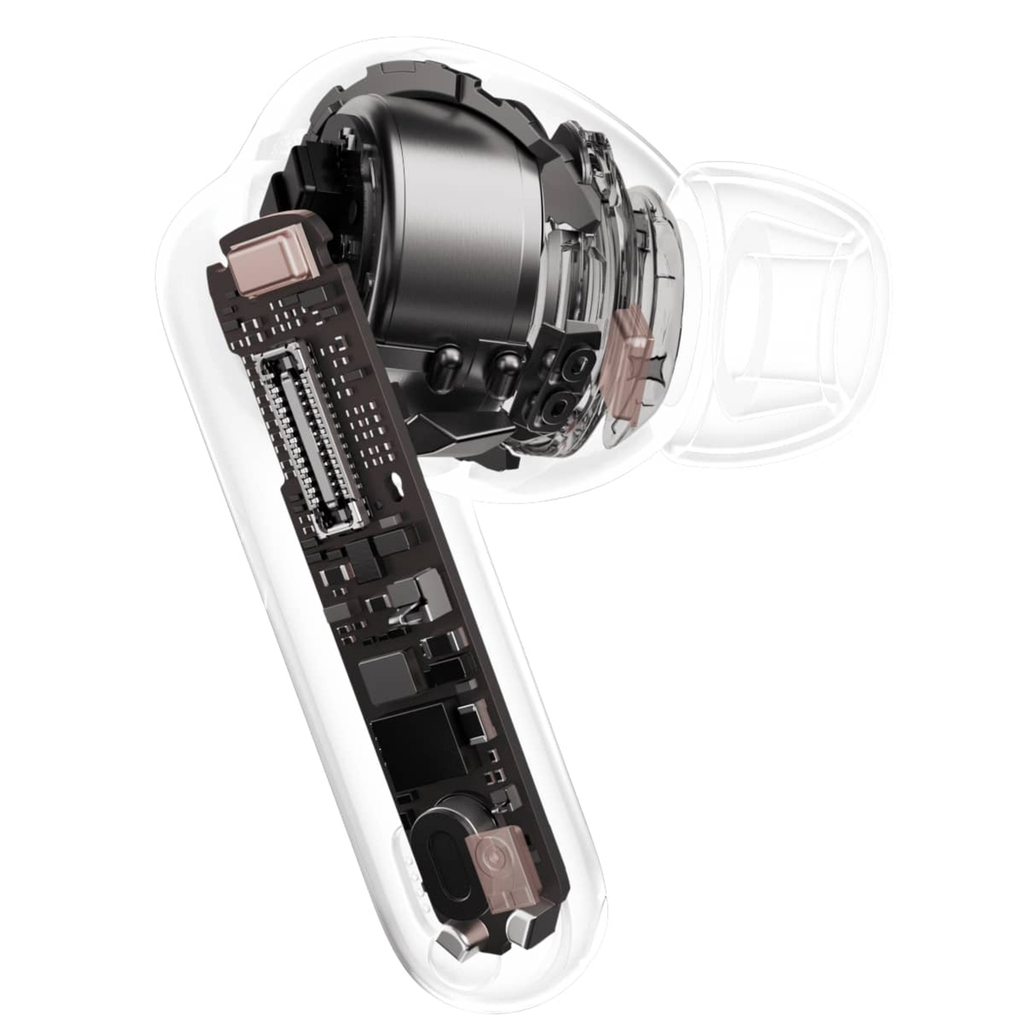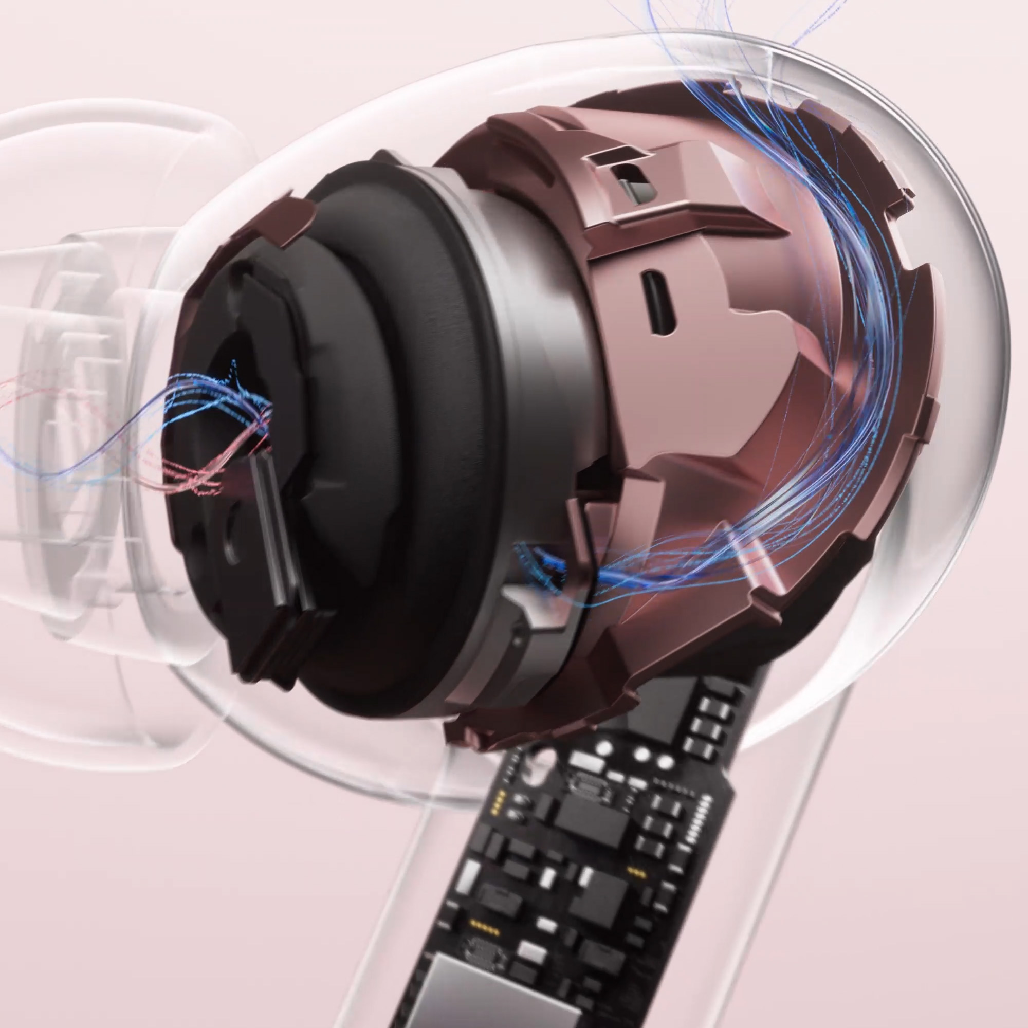 11-миллиметровый динамический излучатель с четырьмя магнитами обеспечивает реалистичный вокал, глубокие текстуры и баланс студийного уровня. Вы можете тонко настроить звук с помощью 10 различных эффектов эквалайзера и персонализированных аудиостилей.