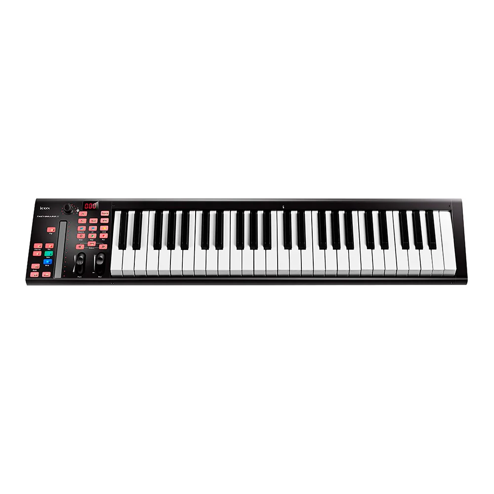 iCON iKeyboard 5X – это компактная MIDI-клавиатура, входящая в серию X, которая содержит несколько подобных инструментов, отличающихся лишь габаритами и количеством клавиш. Данная модель отлично подойдет как для концертной или репетиционной, так и для домашней практики, музицирования и создания собственных музыкальных композиций. Главной «фишкой» этого прибора является многофункциональная панель управления, с помощью которой можно производить настройку и навигацию по DAW (программе для работы со звуком). Среди совместимых DAW есть Reaper, Cubase, Nuendo, Logic Pro, Pro Tools, Ableton Live, Samplitude, Reason и Studio One. Столь обширному списку программ способствуют совместимость с протоколами Mackie Control и HUI.