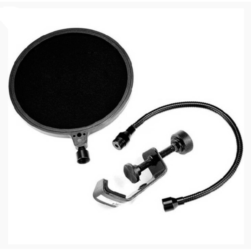 Модель оснащена одинарным нейлоновым экраном, который эффективно рассеивает поток воздуха, не влияя на качество звука. Прочная гибкая “гусиная шея” позволяет точно регулировать положение фильтра, а удобное струбцинное крепление обеспечивает стабильную фиксацию на любой микрофонной стойке.