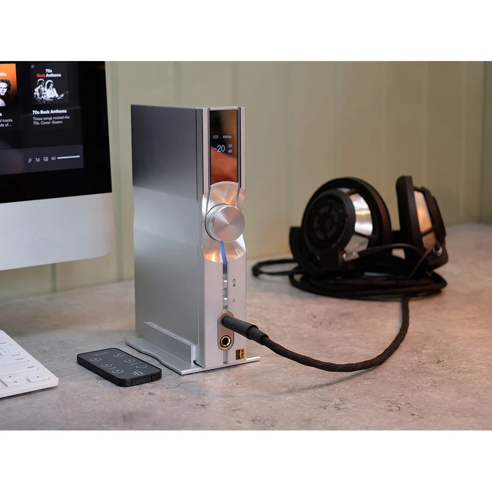 Что касается аналоговой части, то она выполнена на схеме «двойное моно» PureWave. На задней панели имеется один балансный XLR-выход и один стандартный RCA. Для подключения наушников есть разъем 6,3 мм и балансный 4,4 мм Pentaconn. Neo iDSD совместим как с внутриканальными наушниками, так и с аудиофильскими полноразмерными, включая планарные модели (выходная мощность — более 1 000 мВ при 32 Ом). В дополнение ко всему прочему, у Neo iDSD есть дисплей, на который устройство выводит всю самую важную информацию. Установить прибор можно вертикально или горизонтально.