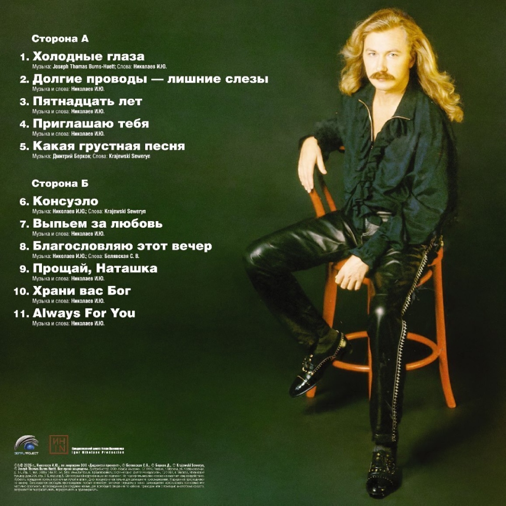 Это впервые официальное переиздание на виниле в 2025 году, чёрный 12″ LP с ремастированным звучанием, который оценят как коллекционеры, так и новые поклонники творчества Игоря Николаева. В альбоме ровно 10 треков общей продолжительностью около 40 минут, наполненных хитовыми мелодиями и неподражаемым творческим почерком музыканта.