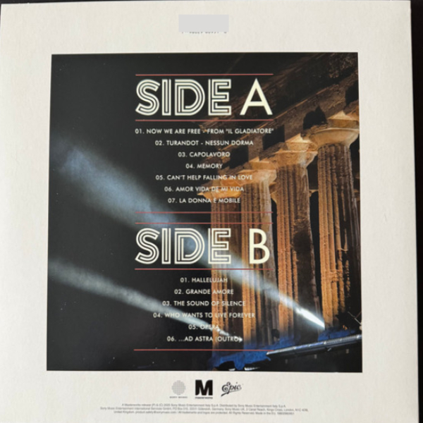 На пластинке трио виртуозно объединяет классику, поп и саундтреки к культовым фильмам. Здесь звучит легендарная ария «Nessun Dorma» из оперы Турандот, бессмертная «La Donna È Mobile» из Риголетто, проникновенная «Memory» из мюзикла Кошки и культовая «Now We Are Free» из фильма Гладиатор. Особое украшение концерта, зажигательная «Libiamo ne’ lieti calici» из оперы Травиата с участием блистательной сопрано Pretty Yende.