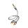 Кабель межблочный для соединения портативных устройств длиной 1.5 м с использованием экранирующей фольги. 24 каратное золотое покрытие разъемов, прямой 3,5 мм стерео Jack на 2 RCA. Цвет белый.
