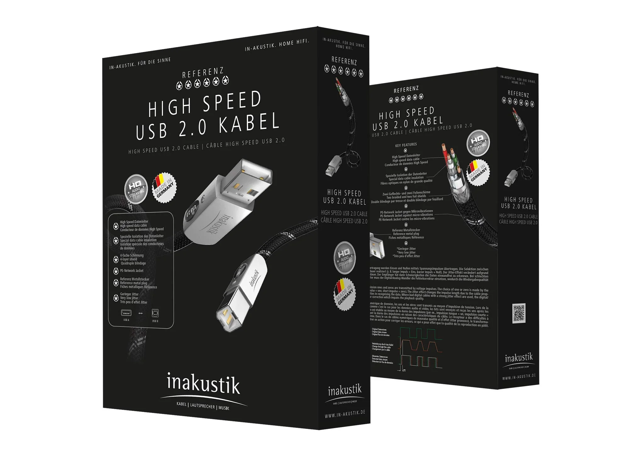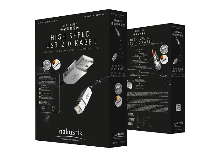 Высокоскоростной кабель Inakustik Referenz High Speed USB 2.0 предназначен специально для передачи аудио HD без потерь и помех. проводящая часть состоит из тонких медных проволок с лаковой изоляцией. В сочетании с высококачественными материалами это позволяет снизить уровень джиттера, который часто влияет на качество звука при потоковой передаче аудиоданных. Чувствительные к помехам сигналы дополнительно защищены 4-х кратным экранированием. Конструкция и материалы кабеля позволяют минимизировать колебания напряжения, что в комплекте с другими, более длинными кабелями позволяет обеспечить превосходно ровную работу периферийных устройств.