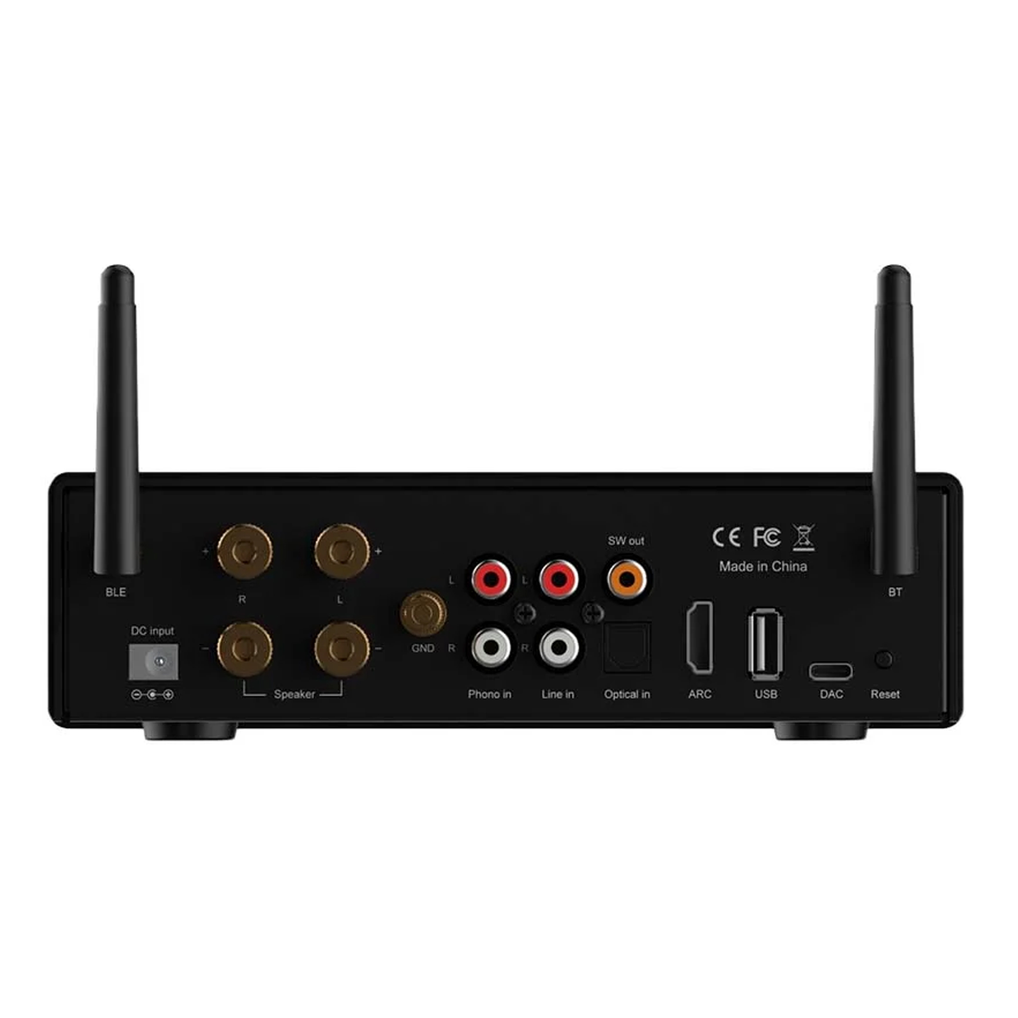 Arylic B50 — это чрезвычайно универсальный и практичный усилитель Bluetooth 5.2, оснащенный, помимо беспроводной связи, широкой панелью разъемов, позволяющей ему адаптироваться к любым ситуациям. Схема усиления обеспечивает мощность 2х50 Вт под 4 Ом или 2х30 Вт под 8 Ом.