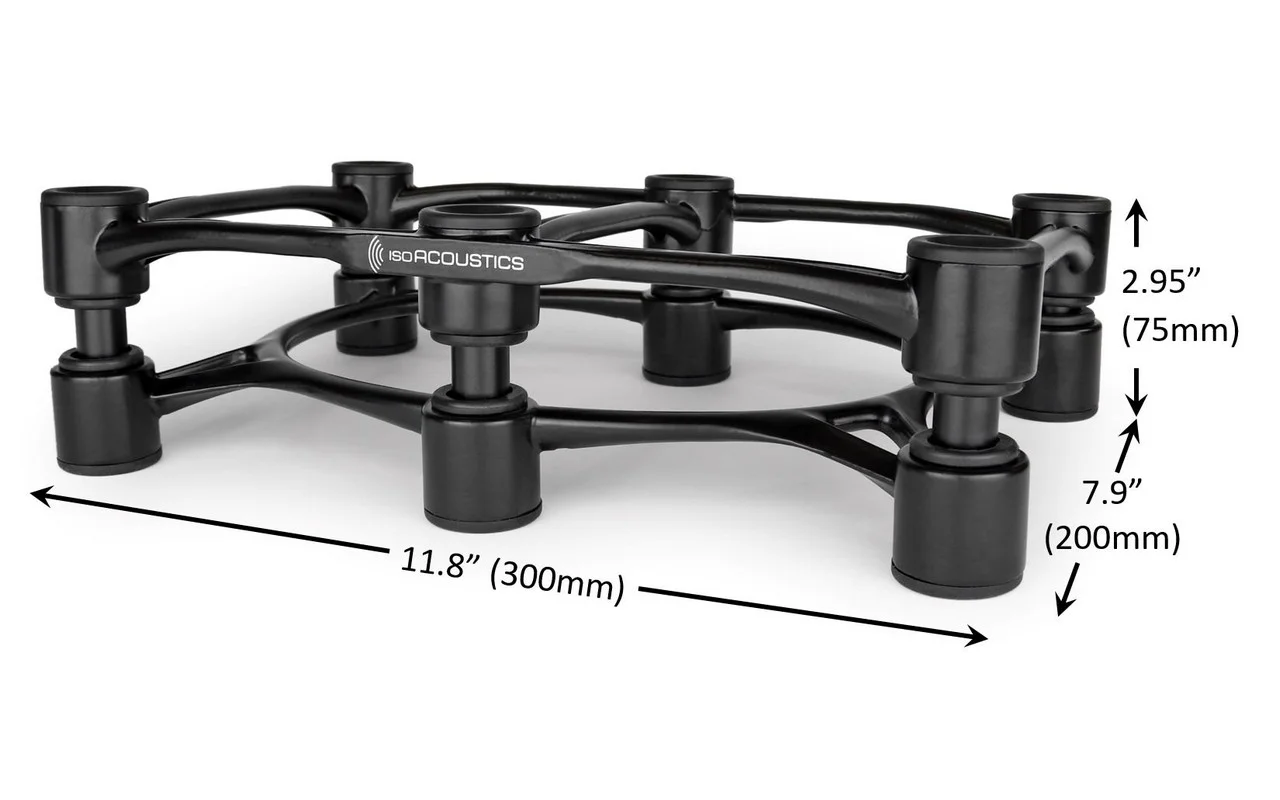 IsoAcoustics Aperta 300 - изолирующая стойка большого размера для больших студийных мониторов или центрального канала полочной акустики. Предотвращает передачу вибраций корпуса на окружающие поверхности. Запатентованные изоляционные подставки IsoAcoustics Apert позволяют добиться от ваших акустических систем трёхмерной звуковой сцены.