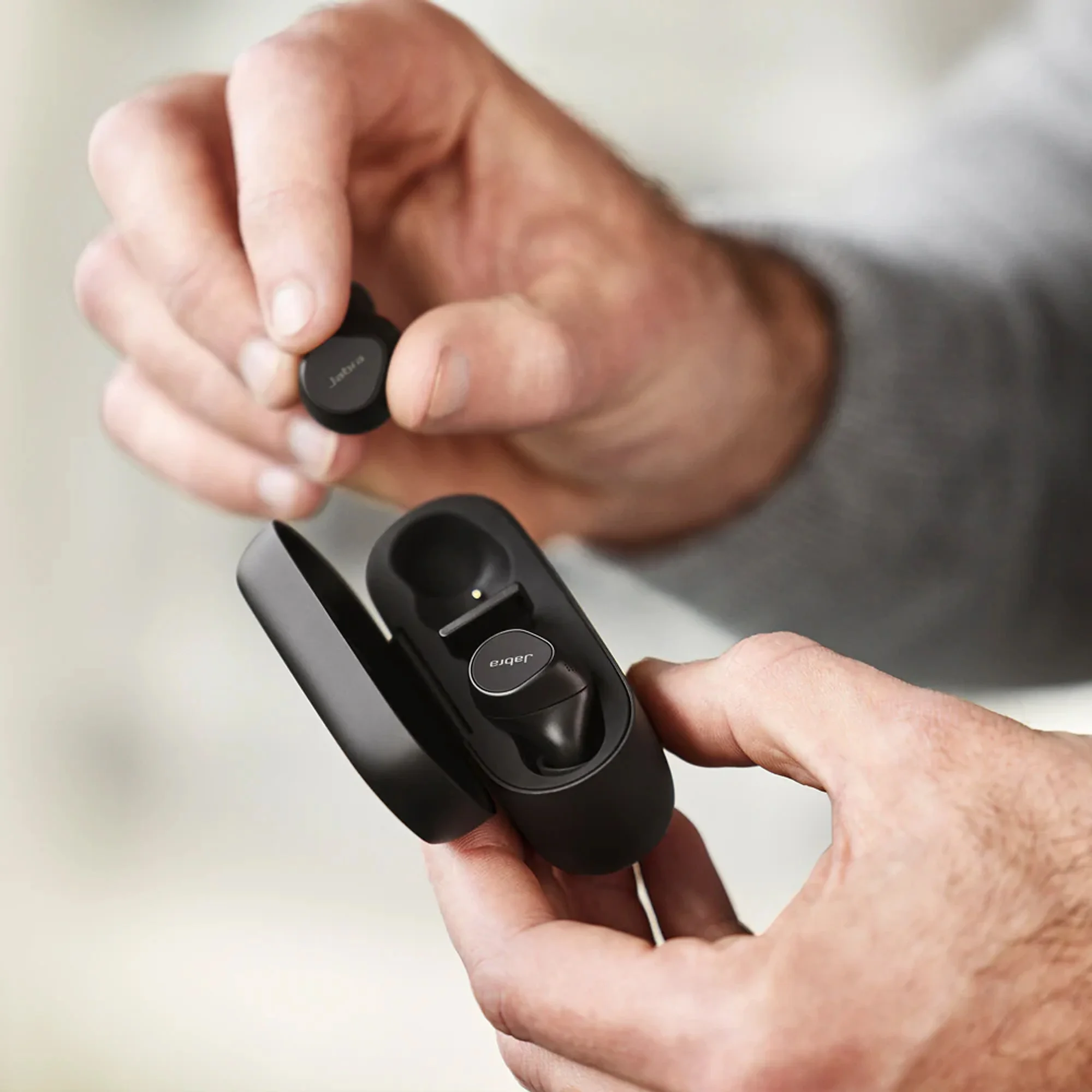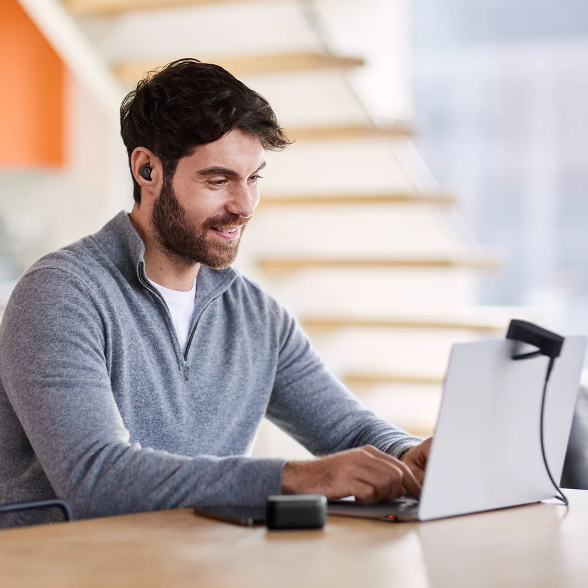 Эргономичный и ультракомпактный дизайн вкладышей основан на обширной базе данных сканирования ушей, что обеспечивает удобную и надежную посадку. Пользователи могут проверить правильность прилегания с помощью функции MyFit в приложении Jabra Sound+ для достижения оптимального качества звука и ANC. Также поддерживается одновременное подключение к двум устройствам (например, к ноутбуку и смартфону) благодаря технологии Advanced Bluetooth Multipoint, что упрощает переключение между задачами.