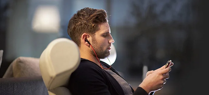 Отдыхайте, наслаждаясь исключительным звучанием. Jabra Halo Smart оснащены 10 мм динамиками, обеспечивающими полный спектр звучания музыки. Каковы бы ни были ваши предпочтения — насыщенные басы или звонкие высокие ноты, — Jabra Halo Smart порадует вас потрясающим качеством звука.