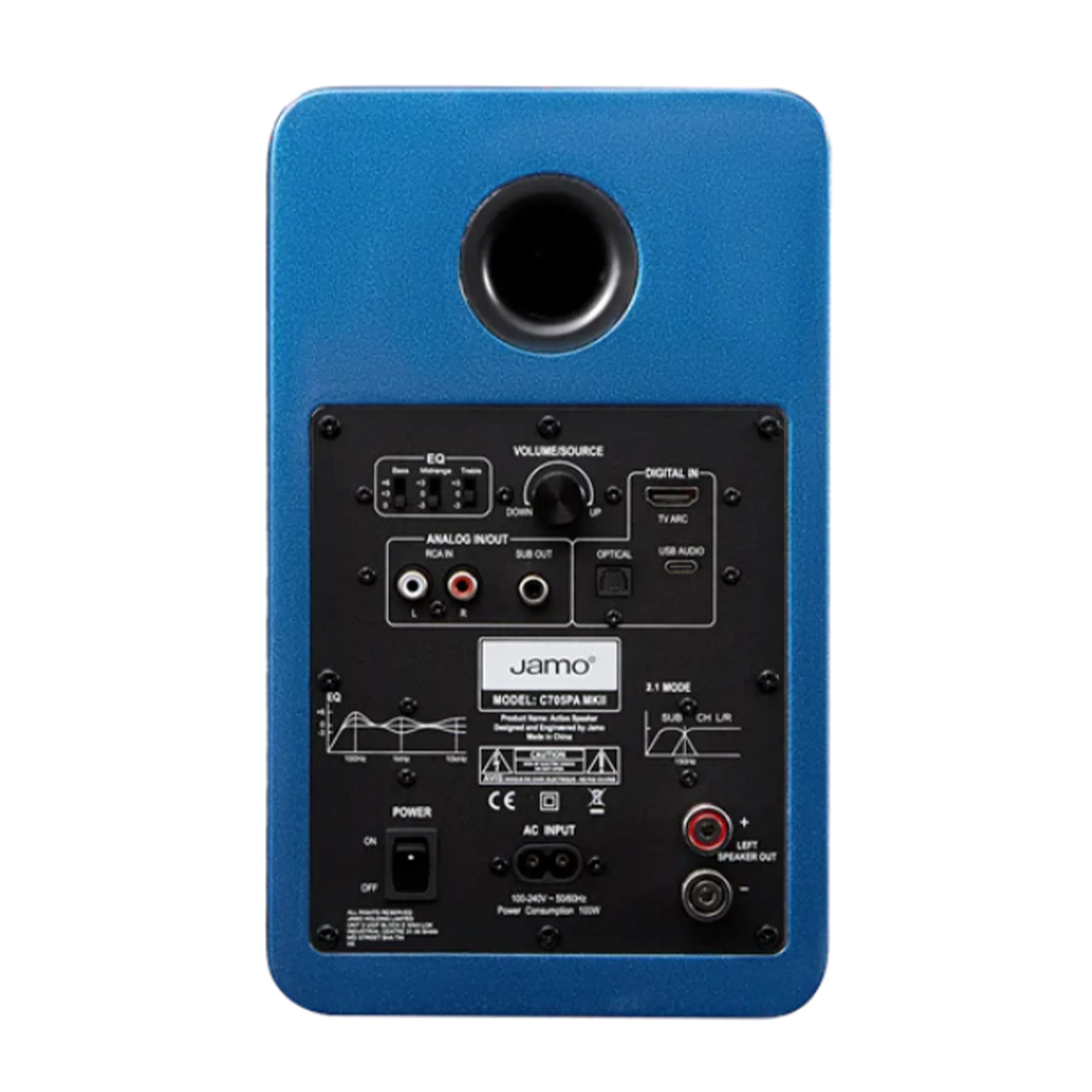 Jamo C705PA MKII – это двухполосная активная акустическая система, построенная на базе 4-дюймового гибридного композитного конического диффузора низкочастотного динамика и 1-дюймового высокочастотного динамика с куполом, оснащенного технологиями Anti-Diffraction WaveGuide и Tweeter Distortion Reduction. Система питается от усилителя класса D мощностью 2 × 45 Вт, обеспечивающего мощный, четкий звук с характерной для датского бренда чистотой и теплотой звучания.