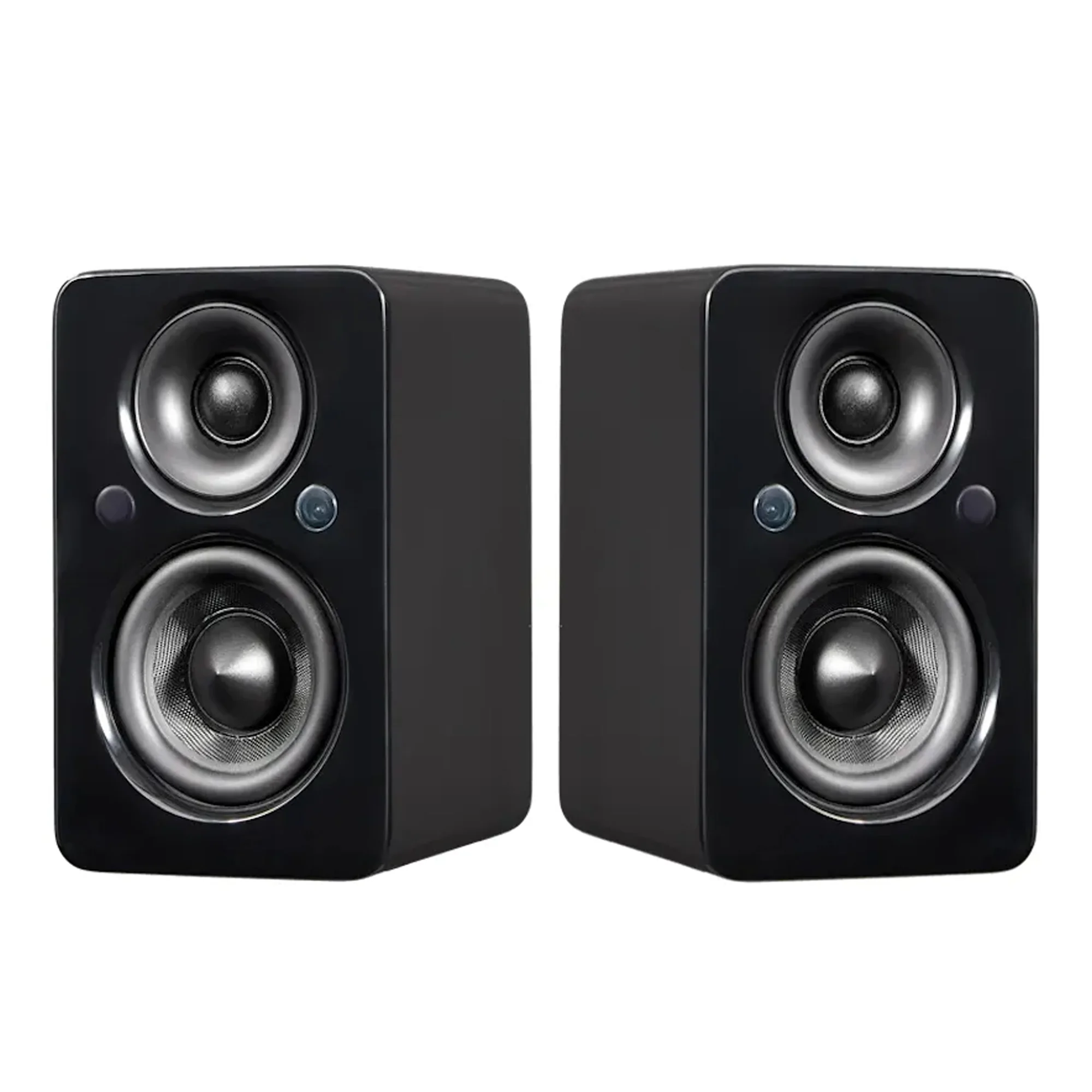 Эта модель выделяется на рынке своим ультракомпактным форм-фактором: размер каждой колонки едва превышает стандартный лист бумаги формата A6 (160 x 100 x 135 мм), что делает их идеальным решением для рабочих столов, небольших студий или интеграции с современными ТВ-системами.