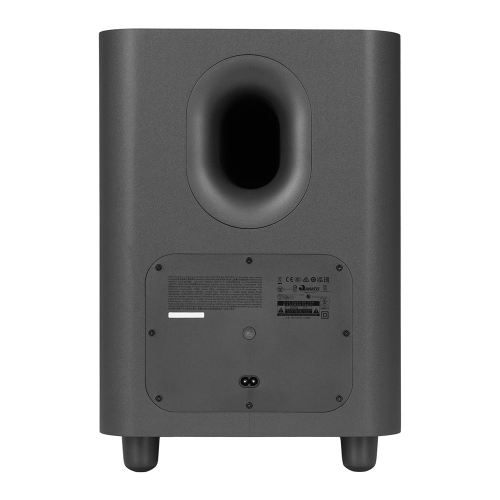 Саундбар комплектуется беспроводным сабвуфером, который обеспечивает глубокие и насыщенные басы. Сабвуфер усиливает низкочастотные звуки, добавляя мощность и глубину аудиоконтенту. Это особенно важно для фильмов с насыщенными звуковыми эффектами и музыки, требующей четкого воспроизведения басов.