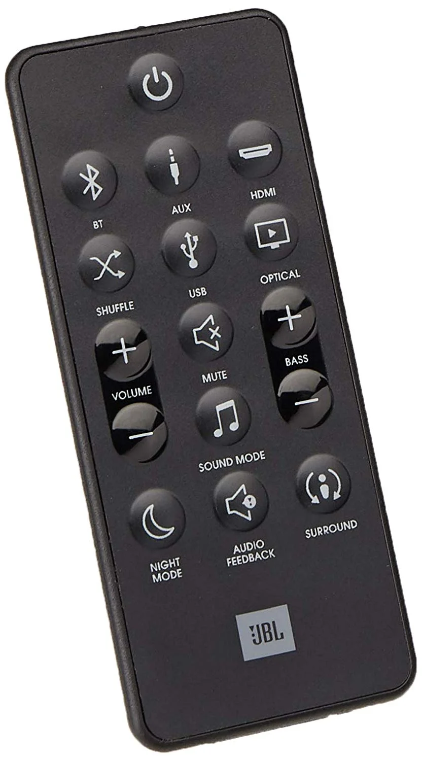 Осуществляйте беспроводную потоковую передачу музыки с любого мобильного устройства. Компактная звуковая панель для улучшения звука вашего телевизора HDMI (ARC) подключение Всё, что вам требуется, – это подключить кабель HDMI к звуковой панели и телевизору. Совместима с пультом ДУ от вашего телевизора Эта звуковая панель JBL совместима со многими пультами ДУ от популярных на сегодняшний день моделей телевизоров. Поэтому пульт ДУ от вашего телевизора можно использовать как для управления телевизором, так и для управления звуковой панелью.