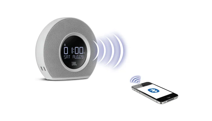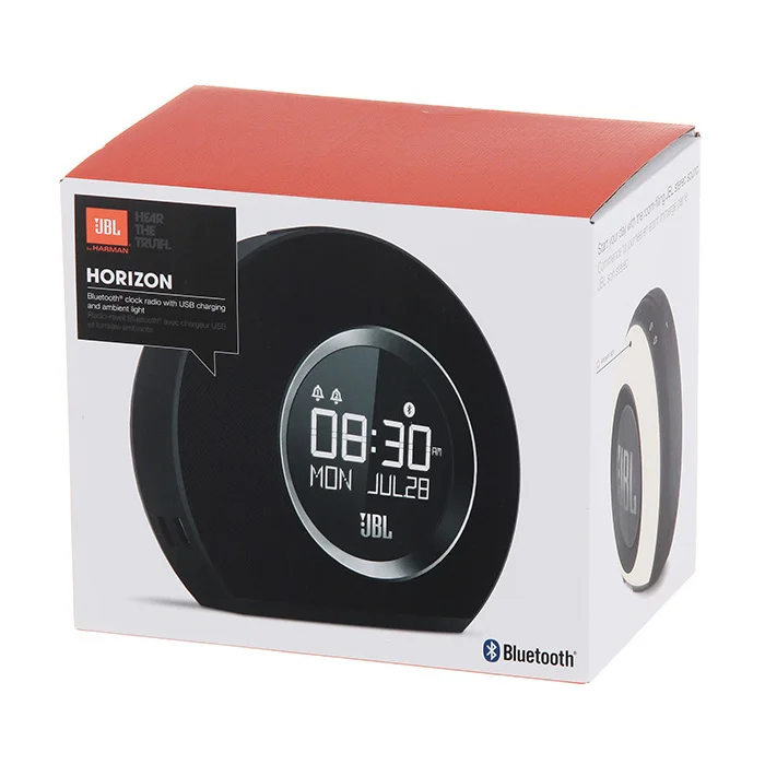 JBL Horizon предлагает пять программируемых пресетов FM радио, а также может передавать музыку без проводов с любого телефона или планшета с поддержкой Bluetooth. Компактный дизайн позволит разместить устройство в любом помещении, оно прекрасно впишется в любой интерьер. Два USB порта обеспечивают быструю зарядку любых подключенных устройств. Большая кнопка Snooze/Light в сочетании с четким ЖК-дисплеем делает использование JBL Horizon очень простым и понятным, а встроенная система резервного питания гарантирует, что вы всегда будете просыпаться, даже во время отключения электроэнергии.