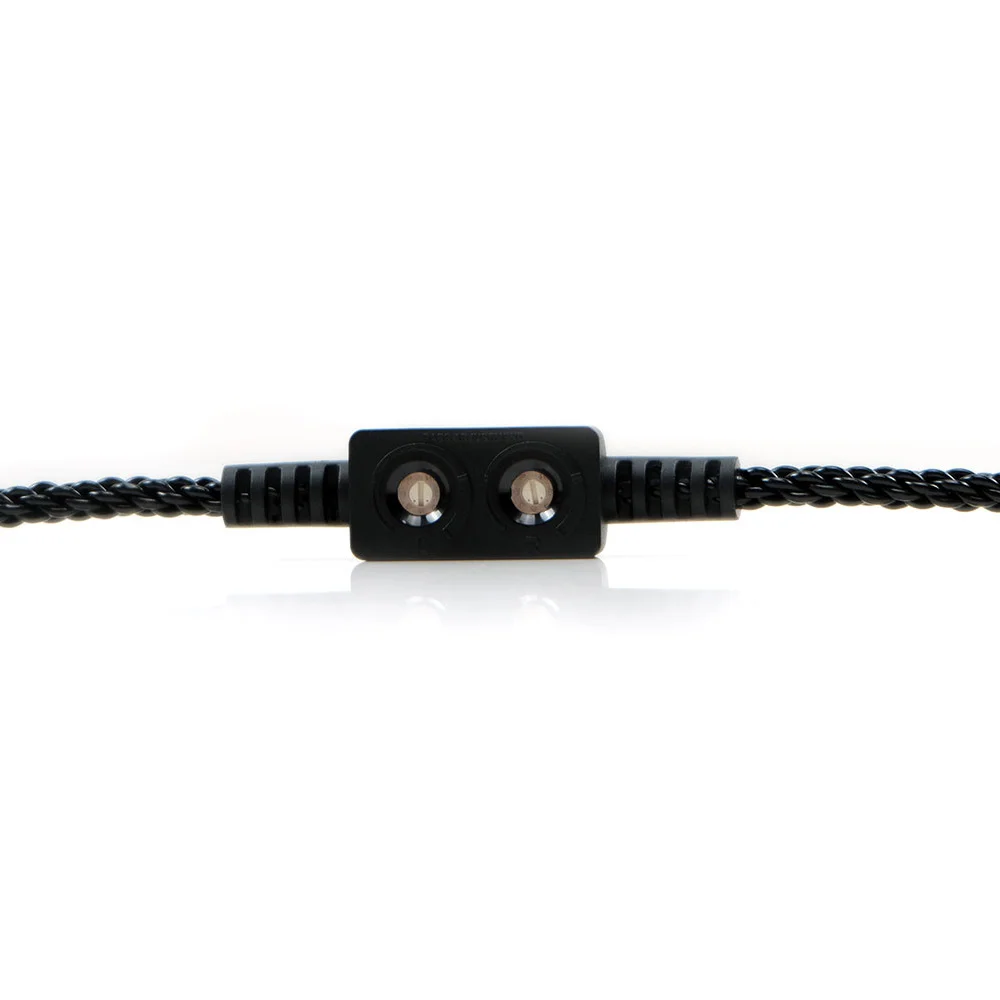 Наушники комплектуются кабелем высокой очистки OFC 4N с серебряным покрытием. Уникальный разъем 7 pin, изготовленный из иридия, отвечает за надежность контакта, а уплотнительное кольцо внутри обеспечивает влагонепроницаемость. Кабель не подвержен окислению, а часть, примыкающая к наушникам, оснащена дополнительной изоляцией с эффектом памяти для формирования заушин.