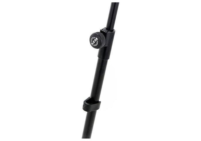 Чёрное прямоугольное чугунное основание с регулировкой угла наклона, 2-х секционная регулируемая удлинительная трубка с механизмом регулировки высоты без царапин. Идеально подходит для барабанов и студий.
