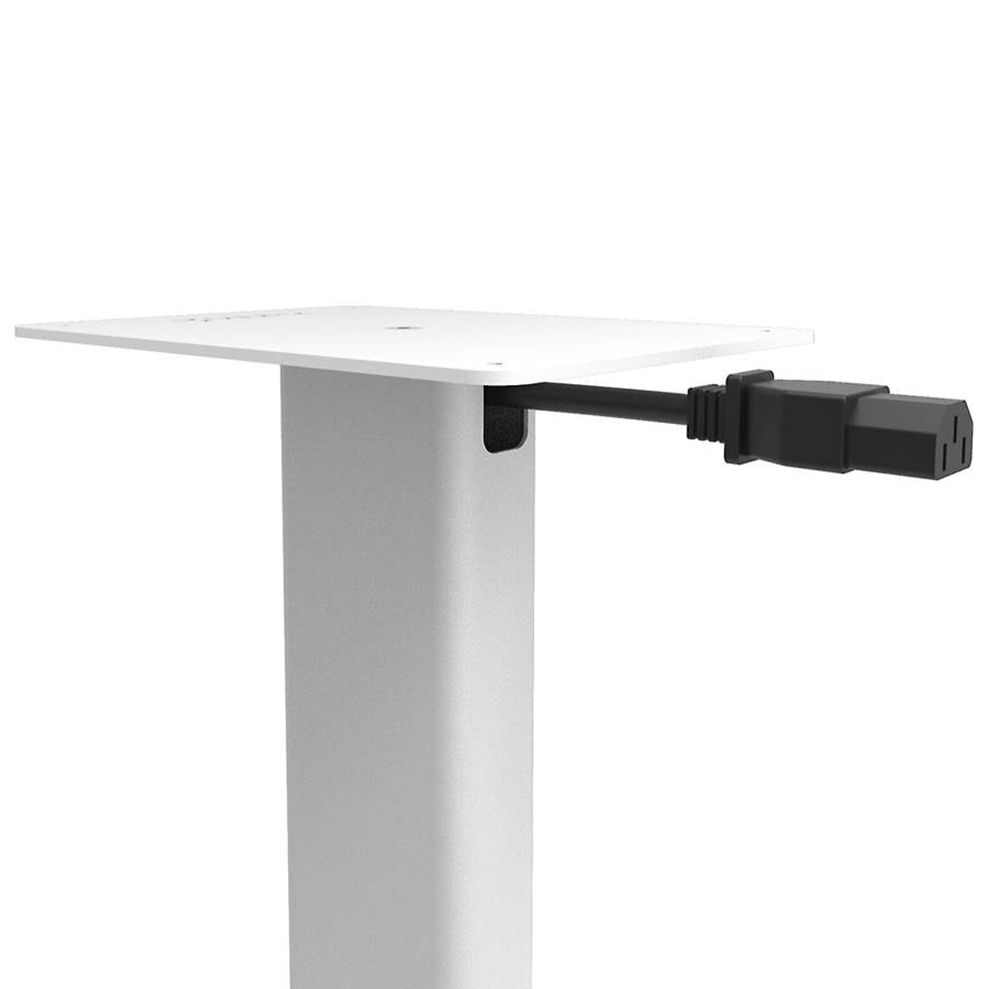 Полая стальная колонна позволяет скрыто проложить акустические и силовые кабели, сохраняя эстетичный вид интерьера. В комплект входят регулируемые резиновые ножки для твердых покрытий и стальные шипы для ковров, обеспечивающие надежную развязку с полом.
