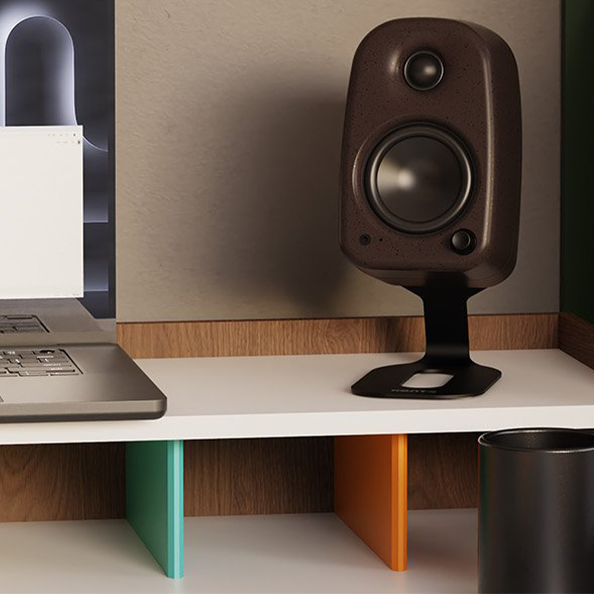 Благодаря компактному основанию и подъему акустики, подставки освобождают место под колонками, позволяя более эффективно использовать площадь рабочего стола.