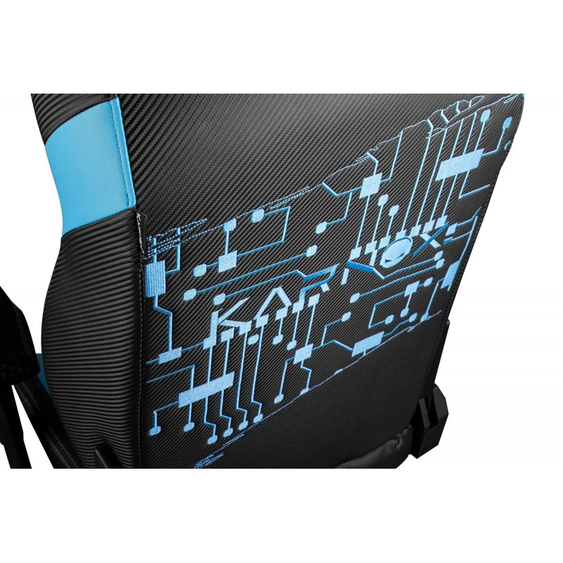 Ромбовидная штриховка в сочетании с V-образной строчкой. Вышитый боковой логотип Karnox, тисненый логотип и эмблема Karnox. Кресло имеет фирменные отверстия Karnox Fierce.