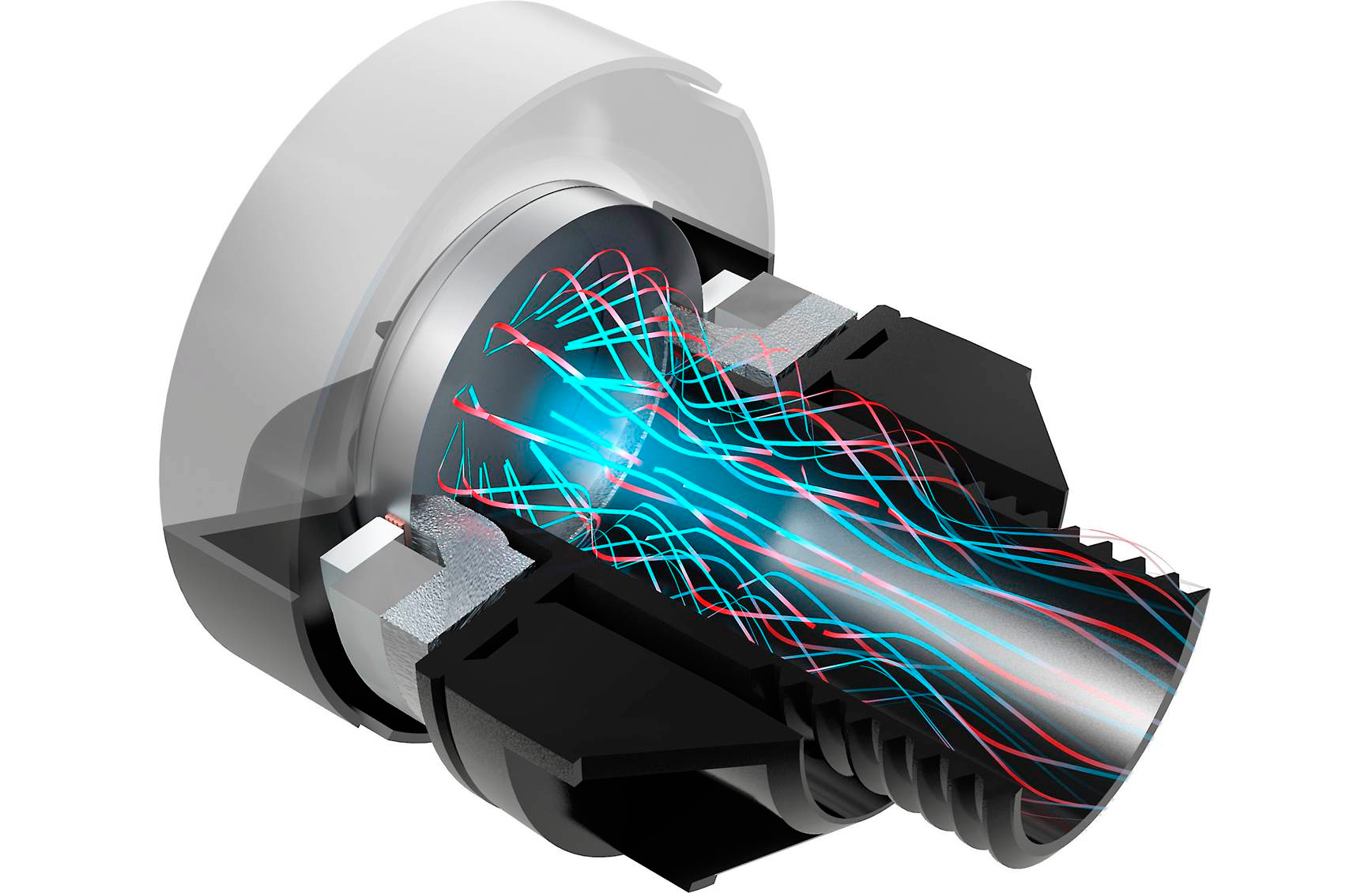 СЧ/НЧ драйвер имеет новую структуру конуса. Более жесткий материал лучше контролирует резонансы пограничных частот, уменьшая паразитные пики, улучшая разборчивость в верхнем среднечастотном диапазоне. Новый большой подвес обеспечивает более длинный ход драйвера для меньших искажений на большей громкости и улучшенное поведение на граничных частотах. Улучшена центрирующая шайба. Жесткость оптимизирована для меньших искажений, что позволяет больше двигаться и лучше контролировать ход. Обеспечивает глубокий и контролируемый бас, идеально работающий в паре с ВЧ в массиве Uni-Q.