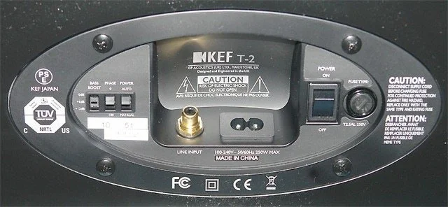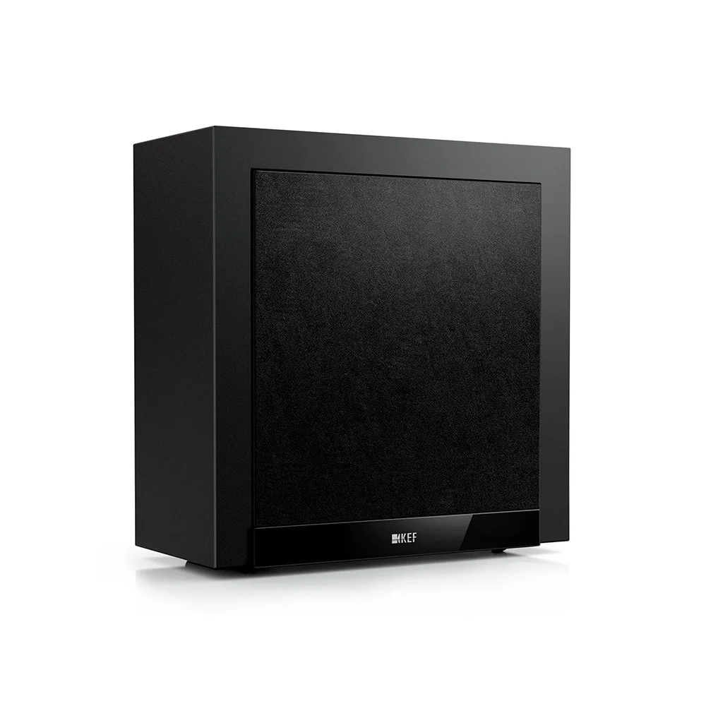 При конструировании сабвуфера KEF T2 Sub инженеры постарались выдержать направление на небольшую толщину корпуса, и хотя он получился гораздо толще сателлитов из этой серии, но общий стиль прослеживается четко. В закрытом корпусе глубиной 177 мм установлен 10-дюймовый динамик. Мощность сабвуфера составляет 250 Вт, а частота среза у него фиксированная — 250 Гц. Но зато есть переключатель Bass Boost с тремя положениями — 0, +3 и +6 дБ.