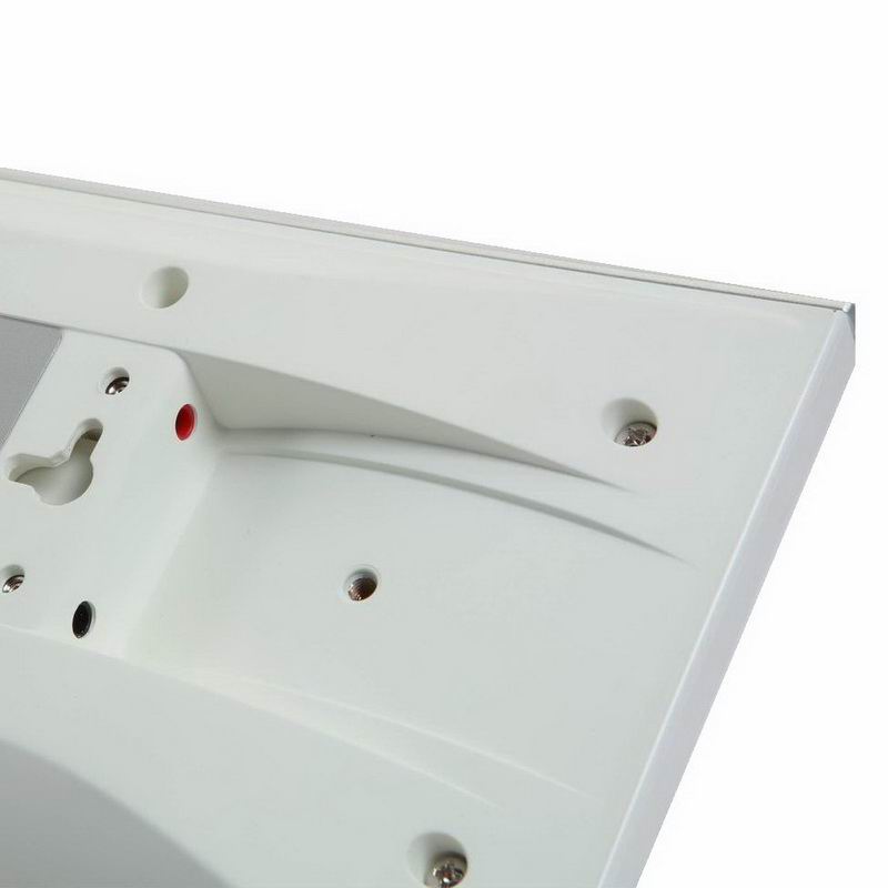 Предусмотрено как настенное крепление, так и установка на горизонтальной поверхности или стойках с помощью изящных алюминиевых подставок. Вместо входных клемм в задней нише сделаны два отверстия, куда вставляется голый провод и зажимается винтом с шестигранным шлицем.