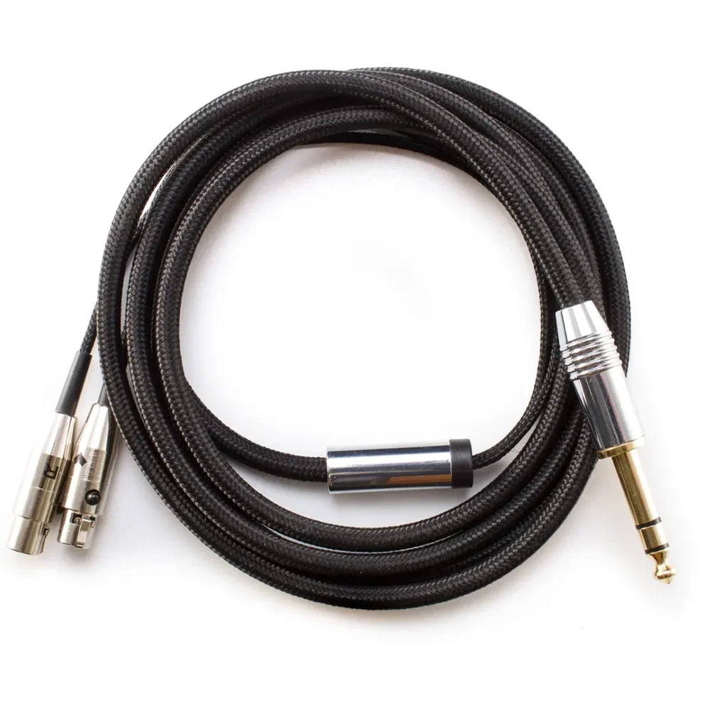 Наушники поставляются со стандартным кабелем фабричного качества в тканевой оплетке. Длина кабеля – 2м. Разъем на кабеле – Jack 6.3 мм. Разъемы на наушниках mini-xlr 4-pin. Для подключения к устройствам с разъемом Jack 3.5мм необходим переходник.