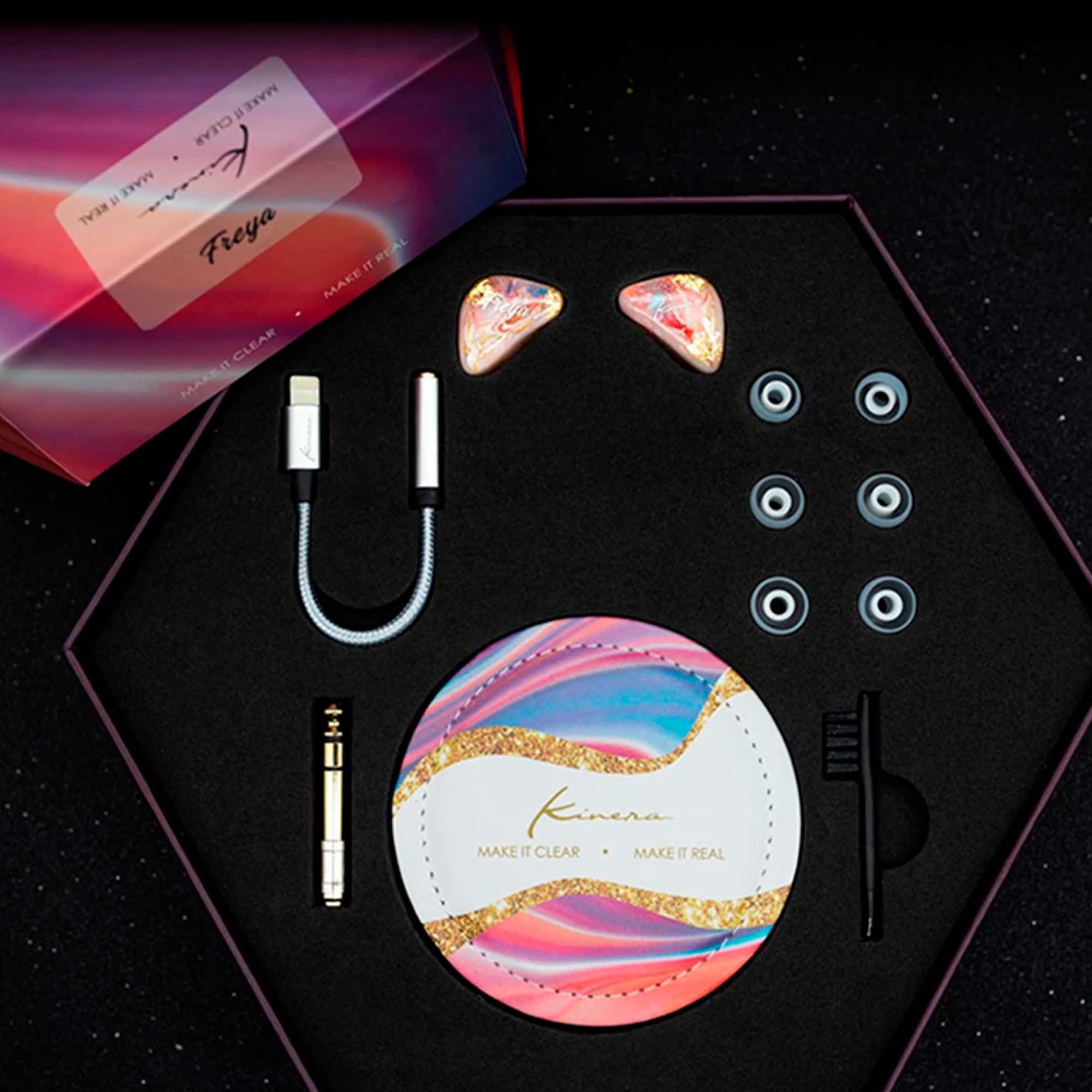 Каждая пара Kinera Freya создана вручную, а затем вручную расписана художником для придания уникального внешнего вида. Компания потратила несколько месяцев на разработку технологии покраски, позволившей придать наушникам внешность, соответствующую уровню звучания.