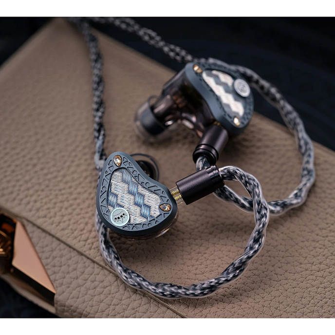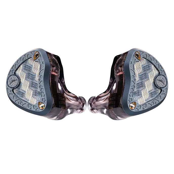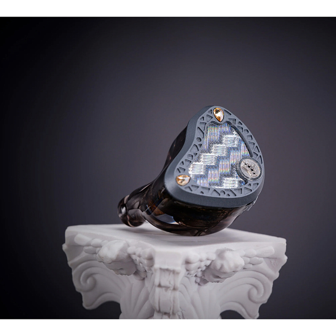 Динамический драйвер с мембраной из бериллия толщиной 10 мм. Мембрана с бериллиевым покрытием высокой жесткости обеспечивает быструю, глубокую и эластичную низкочастотную характеристику, создавая атмосферу погружения и динамического воздействия. Второй динамический драйвер имеет мембрану из жидкого силикона диаметром 8 мм и отвечает за средние и высокие частоты. Уникальный жидкий силиконовый материал обладает превосходными внутренними демпфирующими свойствами, перекрывая средние и верхнесрединные частоты. Он обеспечивает насыщенный, теплый и эмоционально резонансный вокал и инструментальные тона с плавными переходами. 4 Электростатических динамика Sonion отвечают за расширение диапазона сверхвысоких частот. Электростатические драйверы обладают низким уровнем искажений и высокой переходной характеристикой, что придает высоким частотам невероятную воздушность, улавливая каждую мельчайшую деталь в музыке.