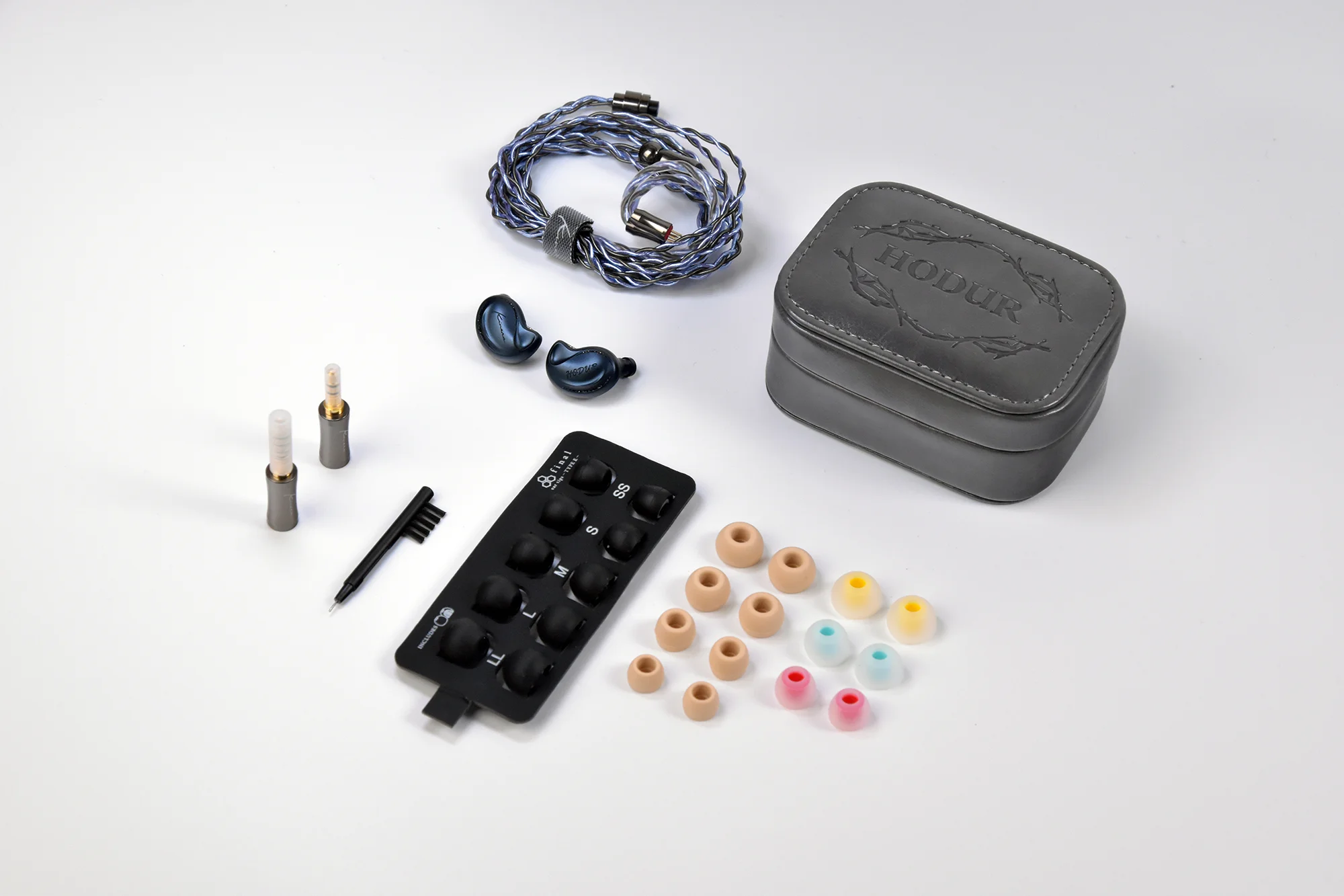 Гибридная конструкция Hodur включает в себя высокочувствительный, маломощный электростатический драйвер, сбалансированный арматурный излучатель K10012 BA и 10-мм коаксиальный динамический драйвер с двойной магнитной композитной диафрагмой Tesla. Все излучатели собственной разработки.