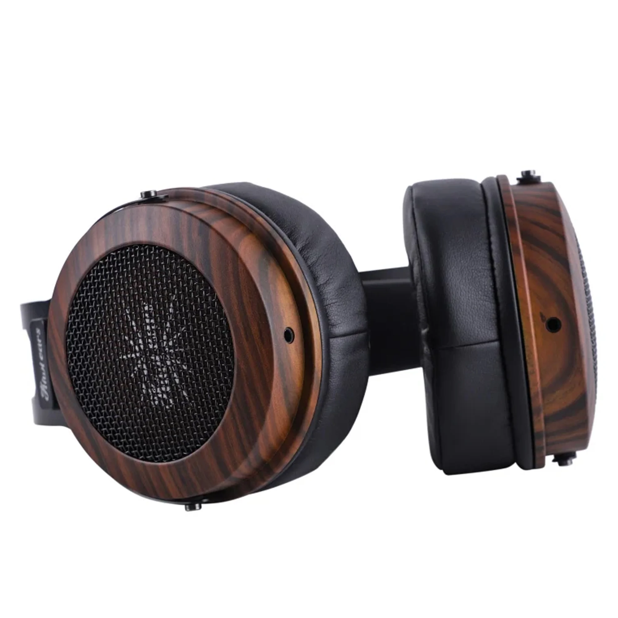 Корпус выполнен из сочетания стали с PVD-покрытием, дерева и веганской кожи, что обеспечивает приятные тактильные ощущения и прочность. Каждый элемент наушников продуман для долгих прослушиваний без усталости, сохраняя при этом привлекательный внешний вид и надежность на долгие годы.