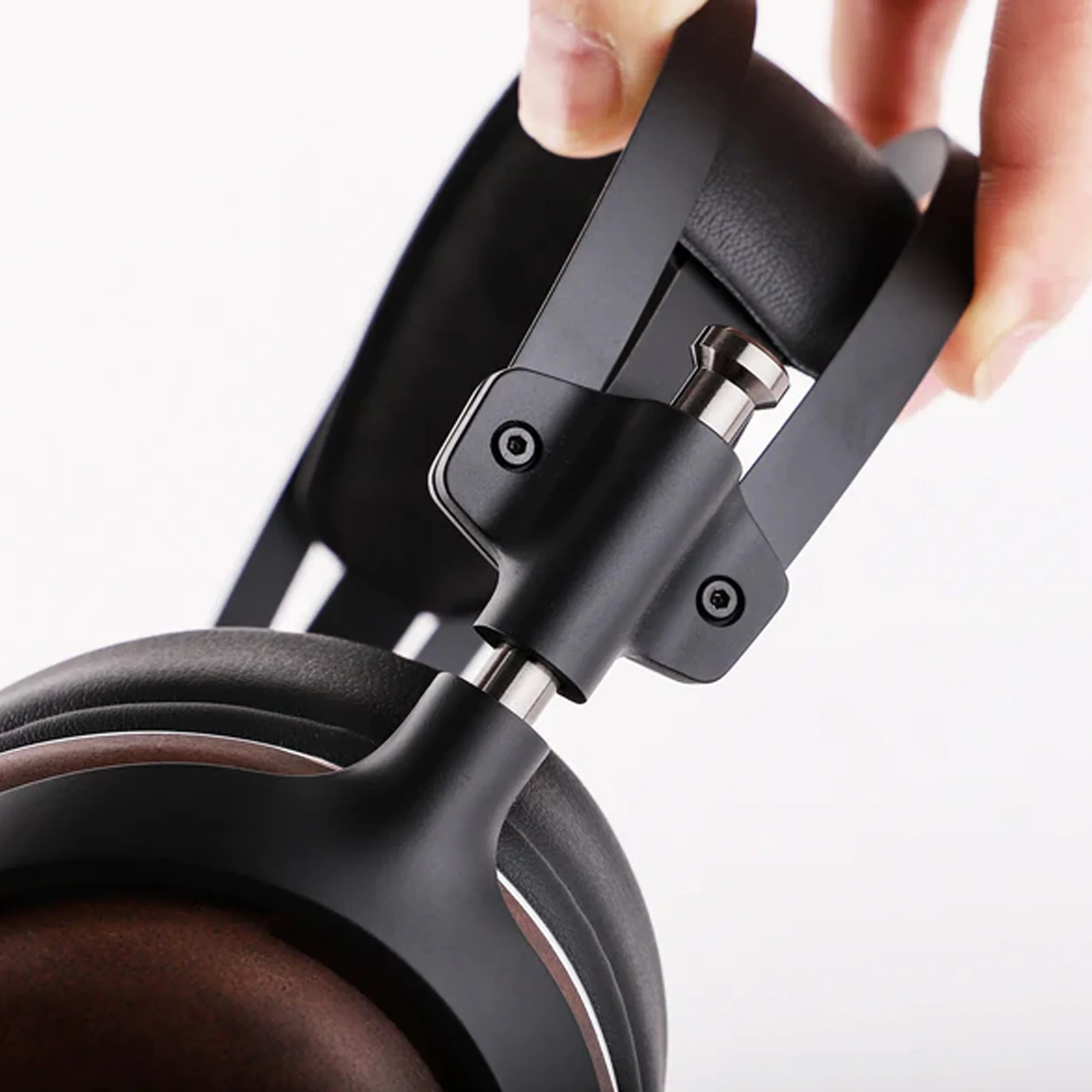 Удобная посадка обеспечивается саморегулирующимся оголовьем, а независимая настройка чашек позволяет адаптировать посадку под любую форму головы. Алюминиевые элементы добавляют прочности конструкции, а деревянные чаши придают наушникам элегантный внешний вид.