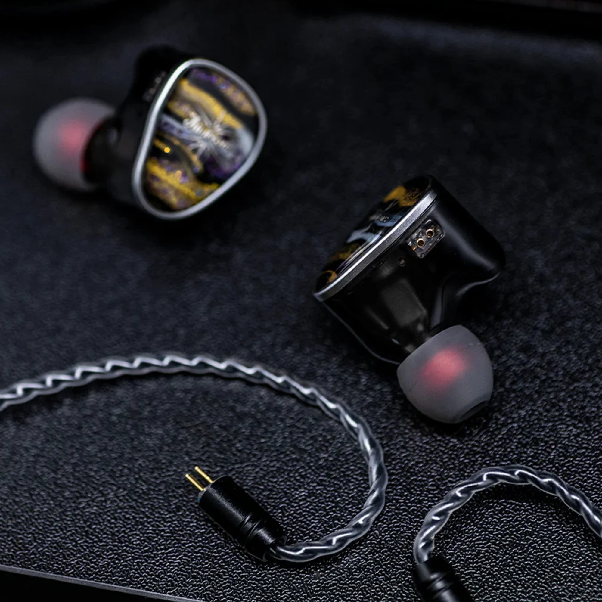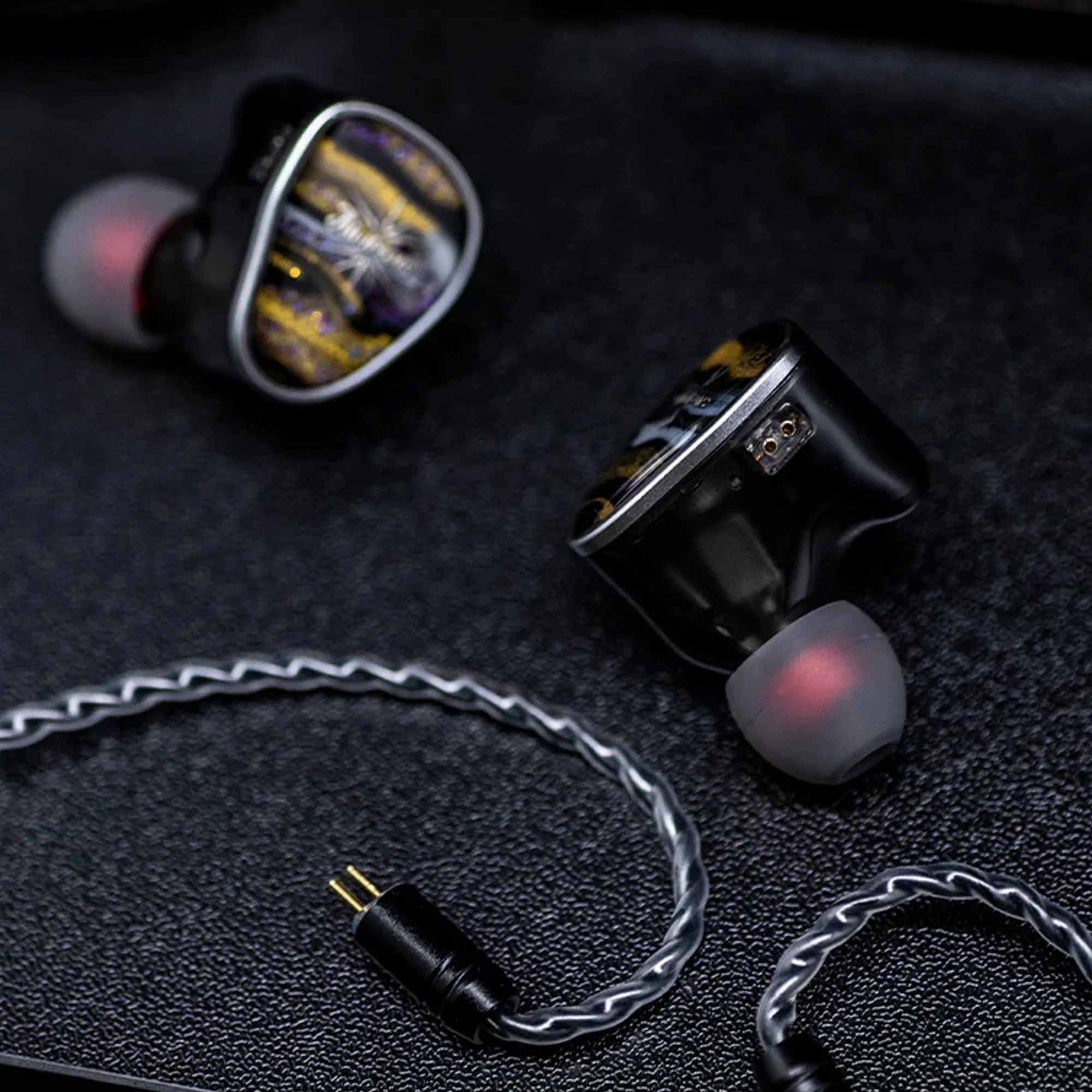 Середина и верхний диапазон построены на трёх арматурных драйверах: один отвечает за средние частоты, а два — за ультравысокие. Такое сочетание обеспечивает плавную передачу вокала, чистое звучание инструментов и чёткую проработку мельчайших нюансов.