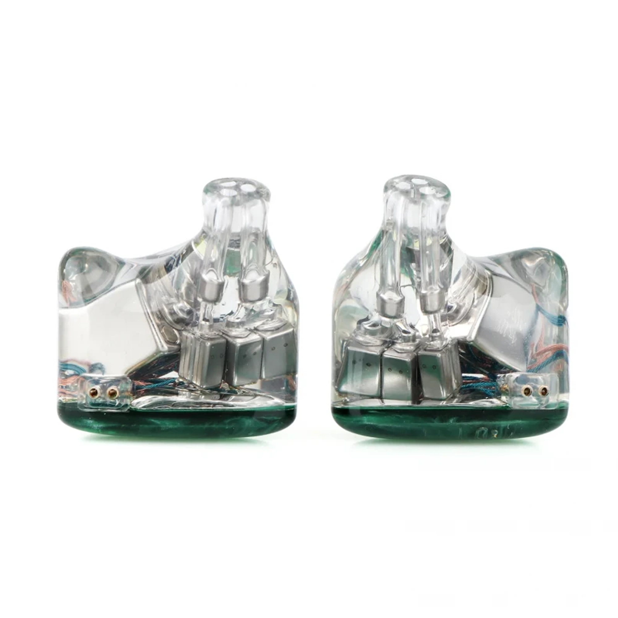 Прозрачные корпуса наушников выполнены из синтетической смолы, а внешние панели окрашены в зеленый либо синий цвет, в зависимости от выбранной версии. Модель комплектуется съемным кабелем с двухполюсным разъемом 0.78 мм и миниджеком 3.5 мм для подключения к источнику сигнала. Чувствительность модели составляет 112 дБ, номинальное сопротивление – 16 Ом.